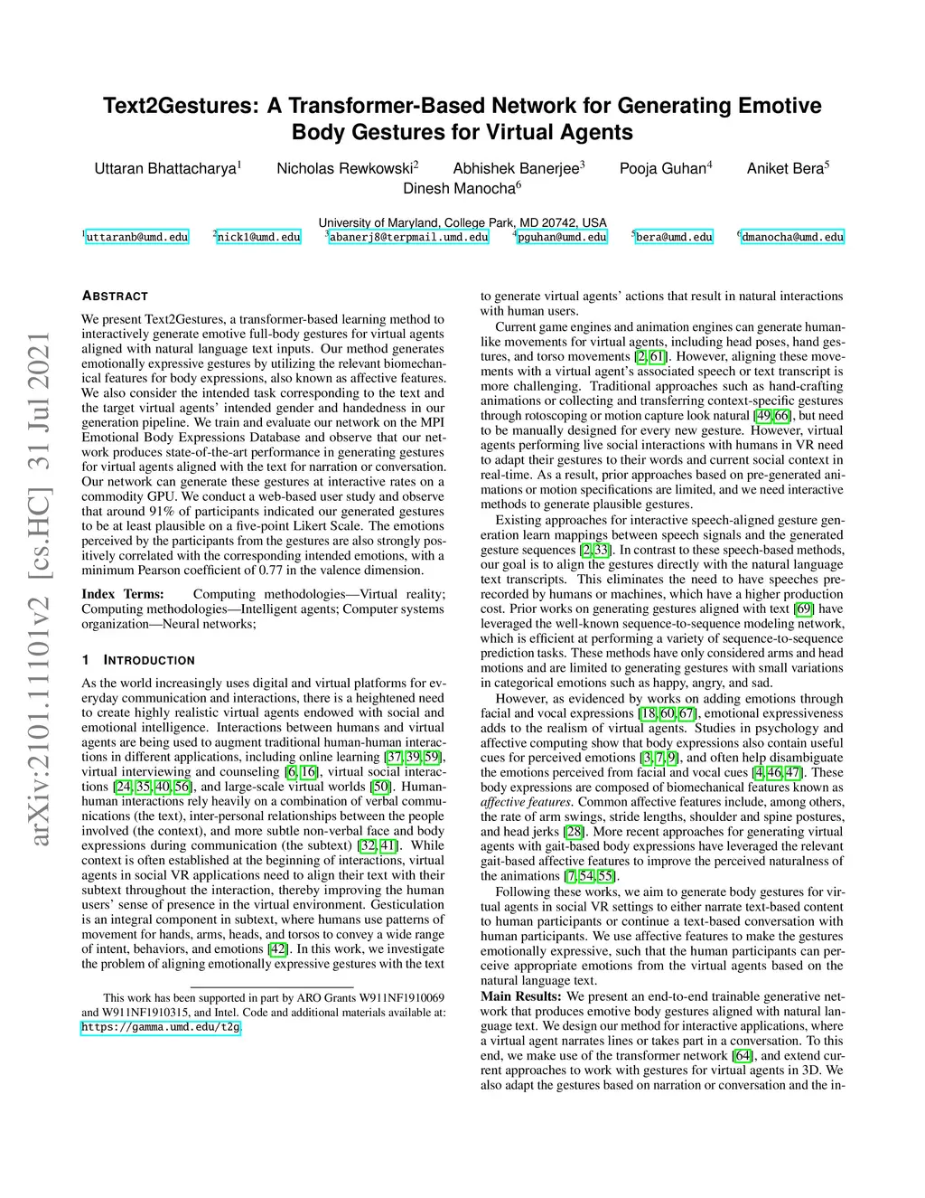 Text2Gestures: A Transformer-Based Network for Generating Emotive Body