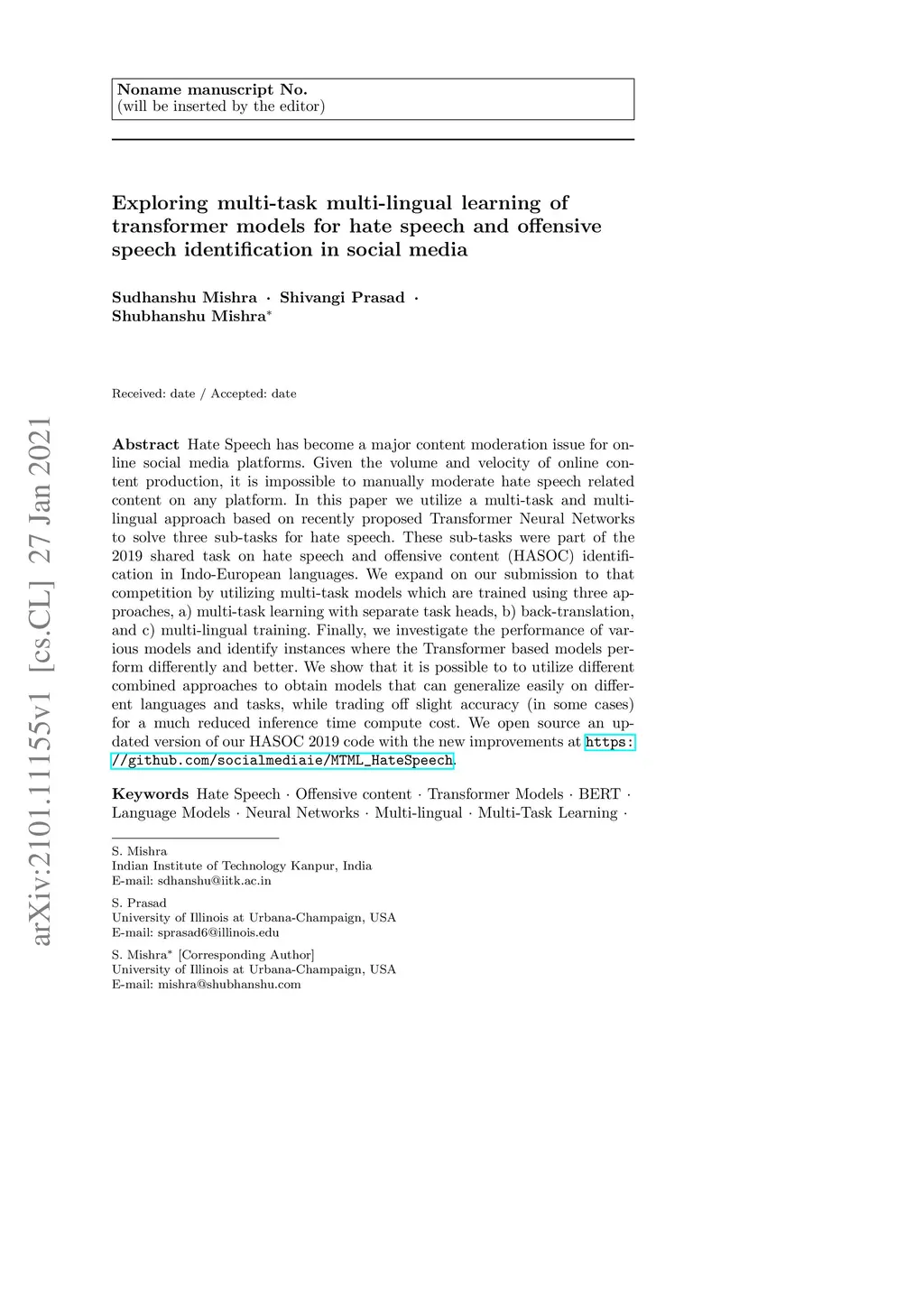 hate speech and offensive speech identification in social media