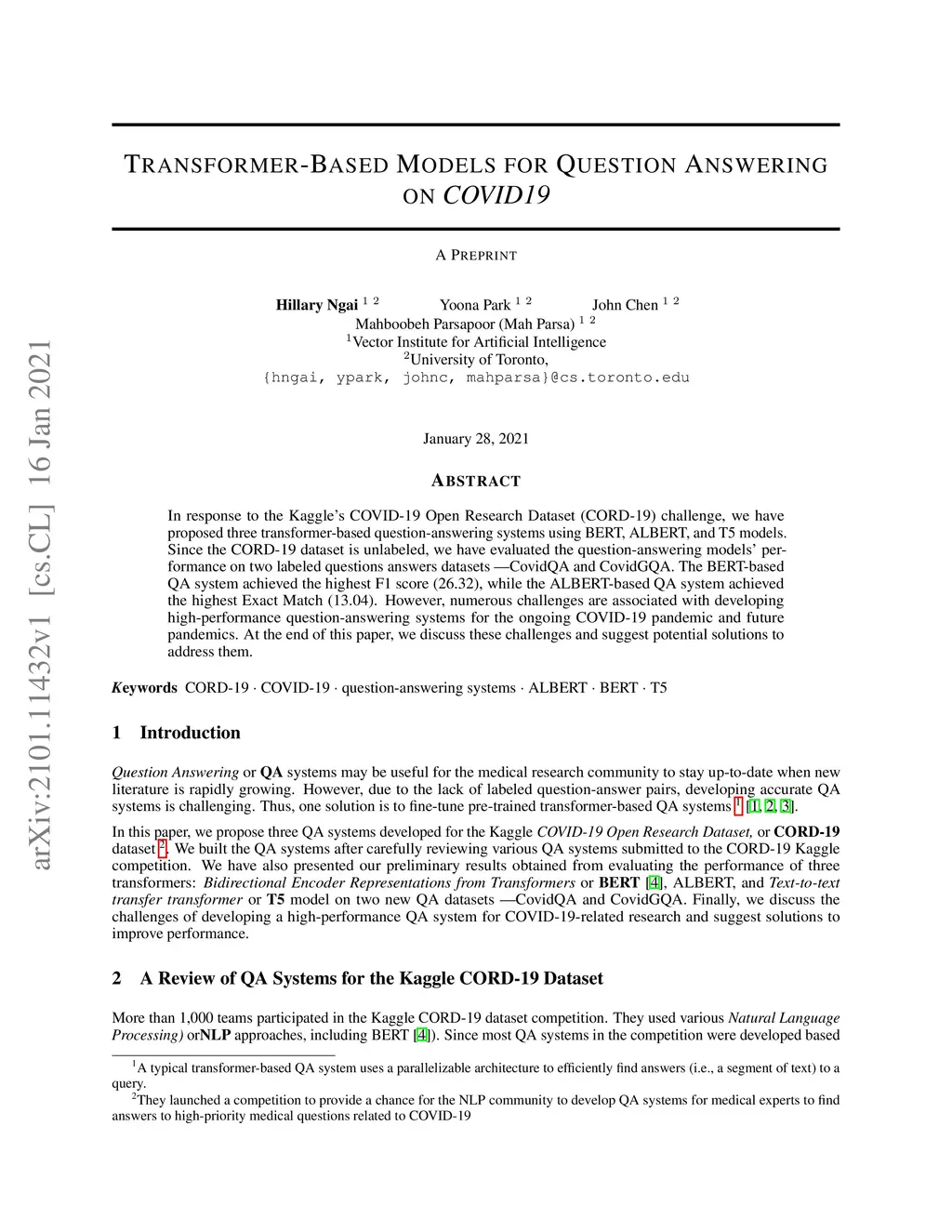 Transformer-Based Models for Question Answering on COVID19