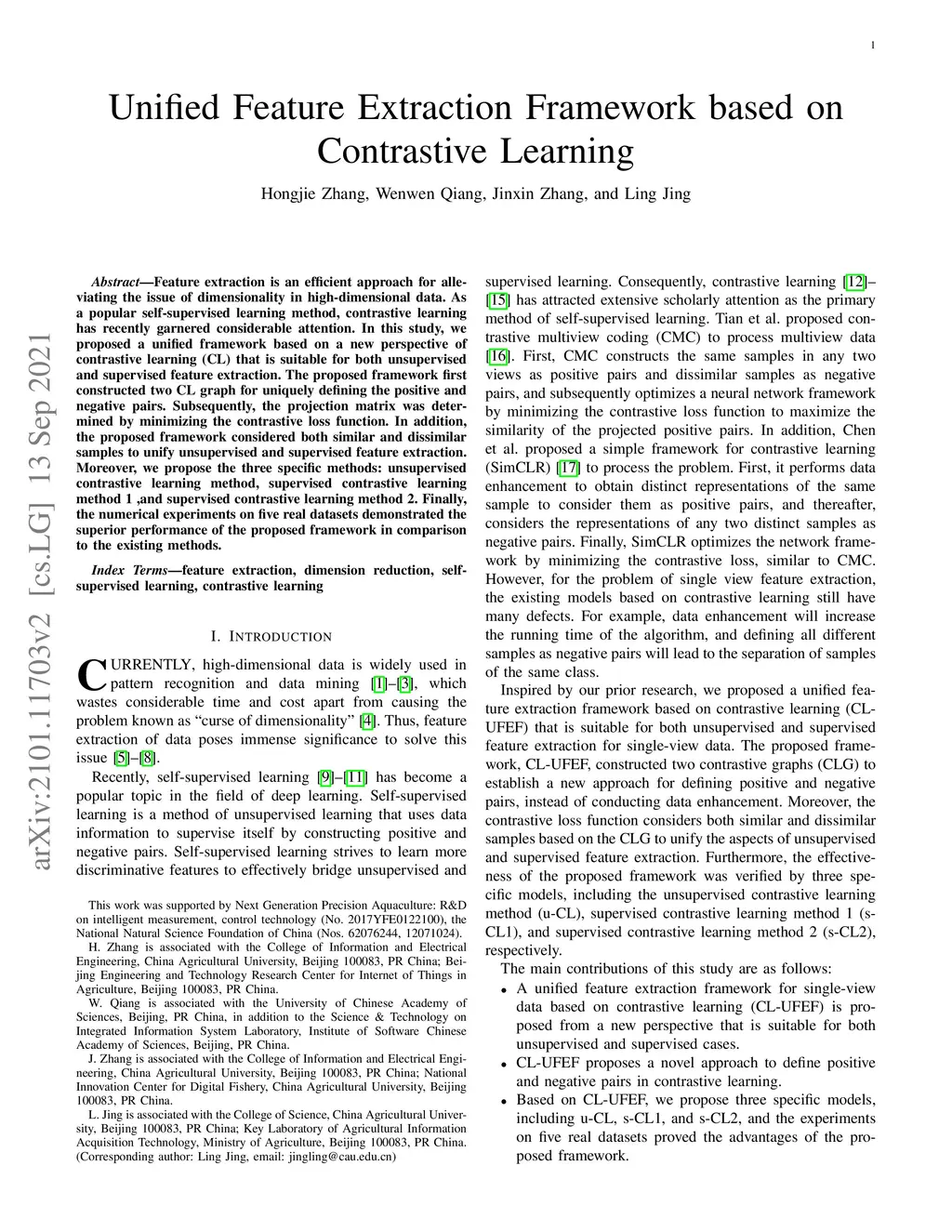 Unified Framework for Feature Extraction based on Contrastive Learning