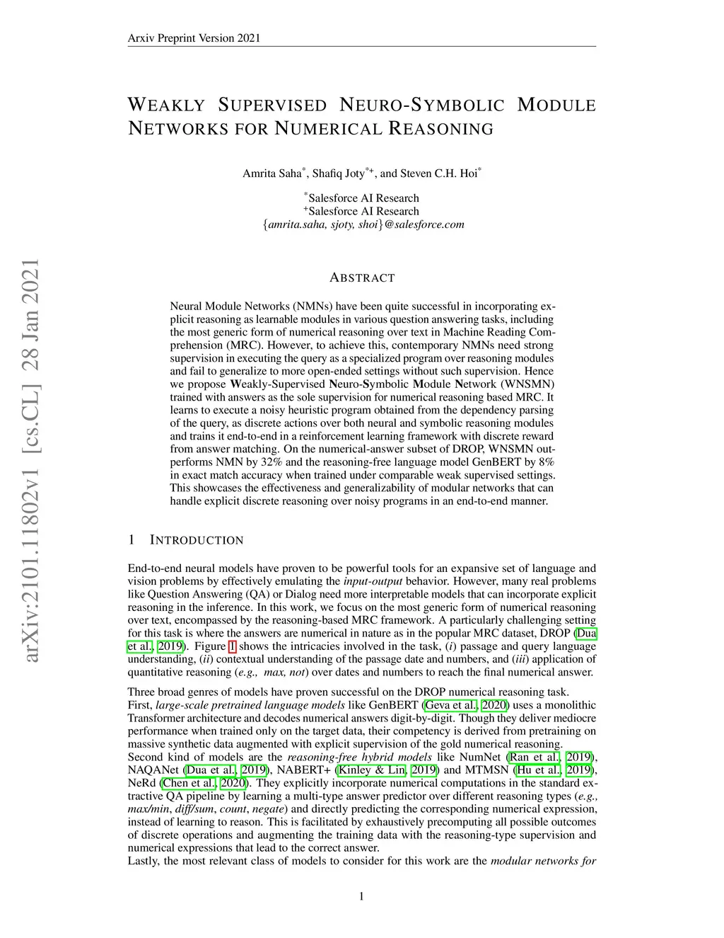 Weakly Supervised Neuro-Symbolic Module Networks for Numerical Reasoning