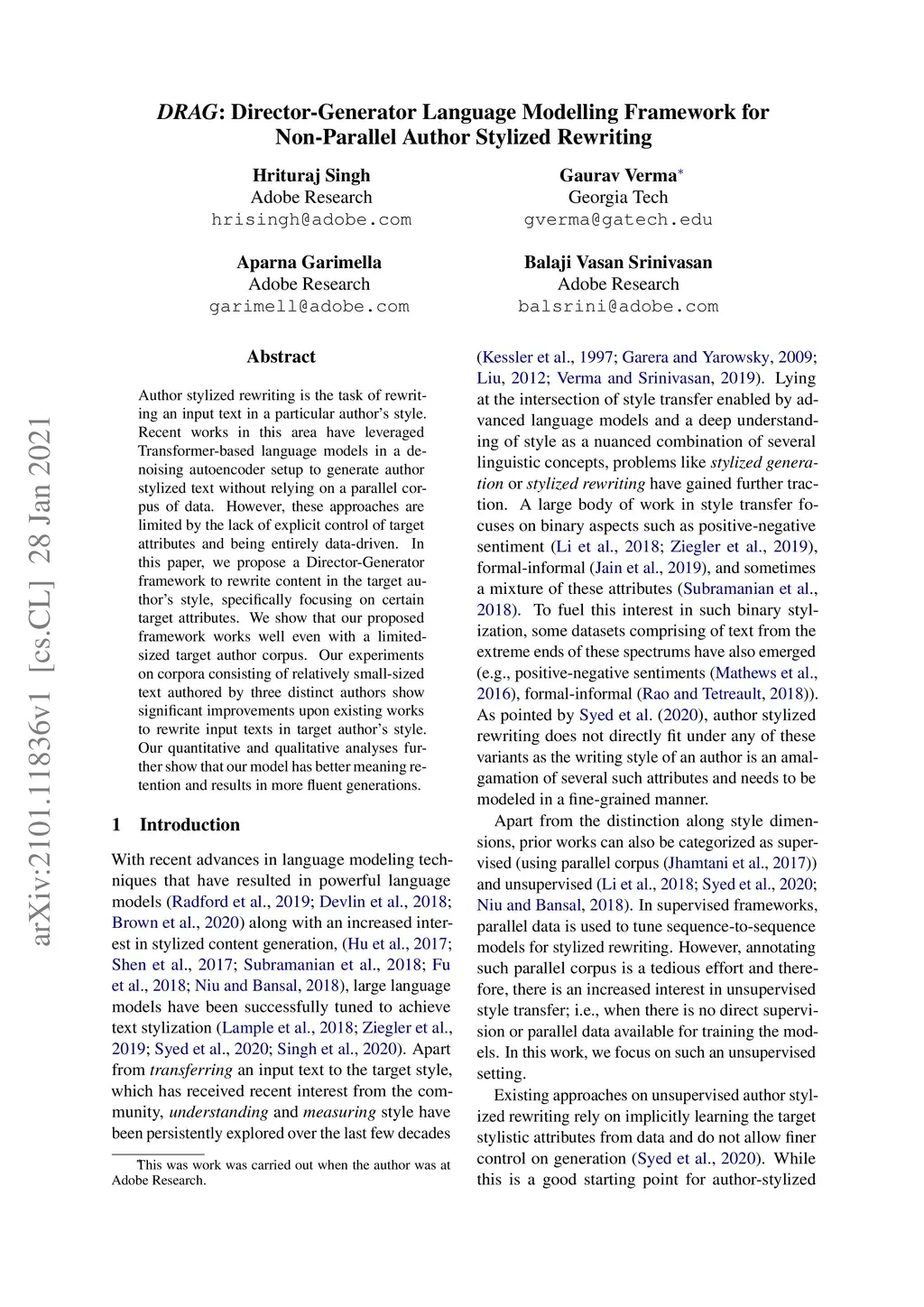 DRAG: Director-Generator Language Modelling Framework for Non-Parallel