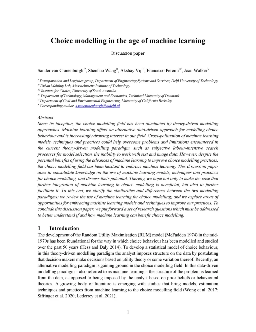 Choice modelling in the age of machine learning -- discussion paper