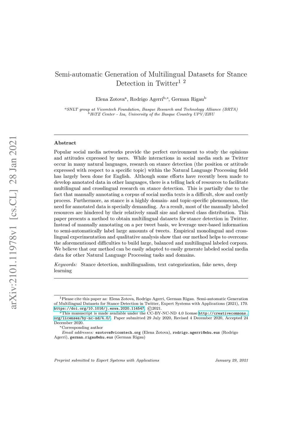 Semi-automatic Generation of Multilingual Datasets for Stance Detection