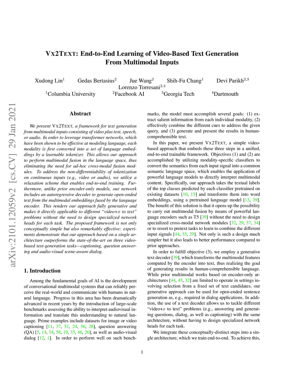 VX2TEXT: End-to-End Learning of Video-Based Text Generation From