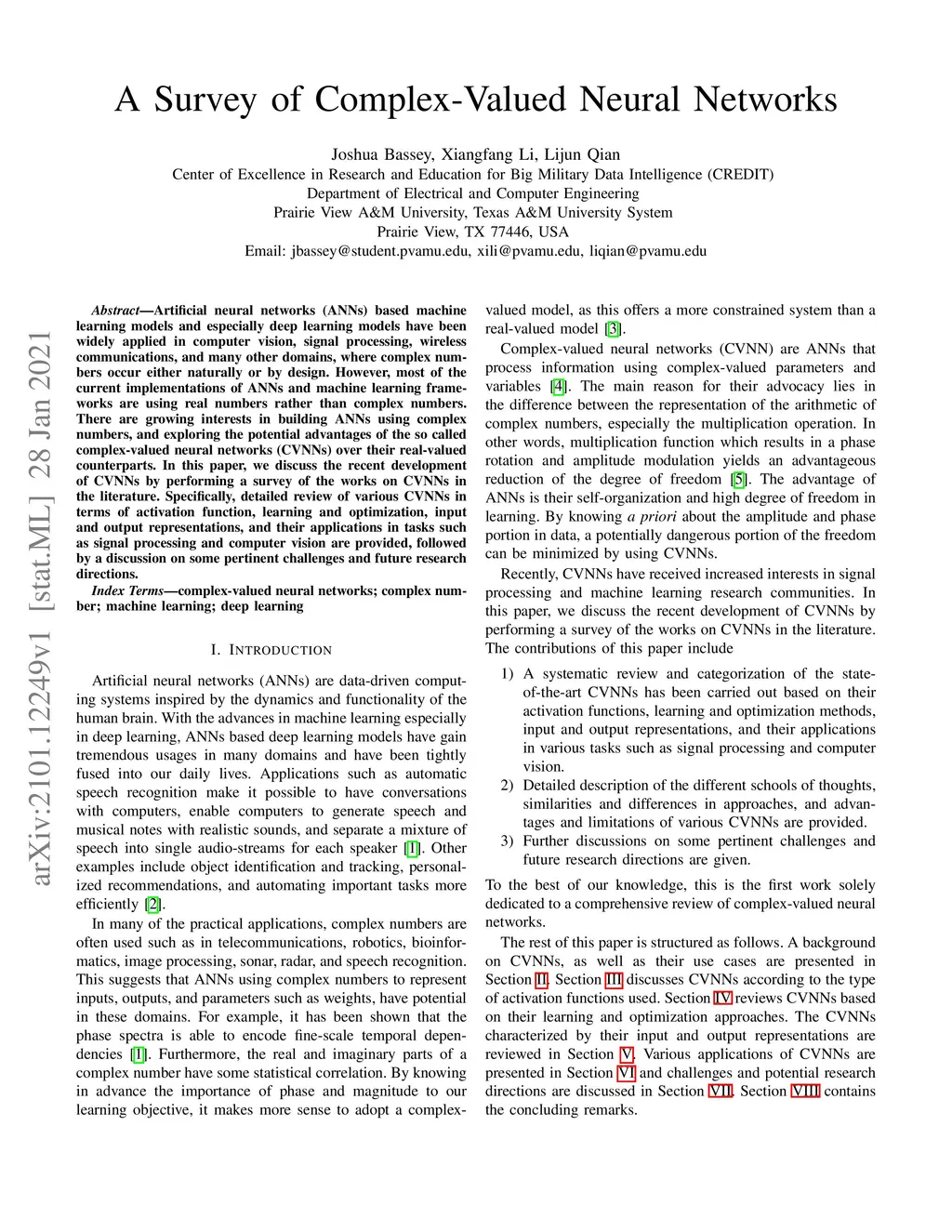 Artificial neural networks (ANNs) based machine learning models and especially deep learning models have been widely applied in computer vision, signal processing, wireless communications, and many other domains, where complex numbers occur either naturally or by design. However, most of the current implementations of ANNs and machine learning frameworks are using real numbers rather than complex numbers. There are growing interests in building ANNs using complex numbers, and exploring the potential advantages of the so-called complex-valued neural networks (CVNNs) over their real-valued counterparts. In this paper, we discuss the recent development of CVNNs by performing a survey of the works on CVNNs in the literature. Specifically, a detailed review of various CVNNs in terms of activation function, learning and optimization, input and output representations, and their applications in tasks such as signal processing and computer vision are provided, followed by a discussion on some pertinent challenges and future research directions.