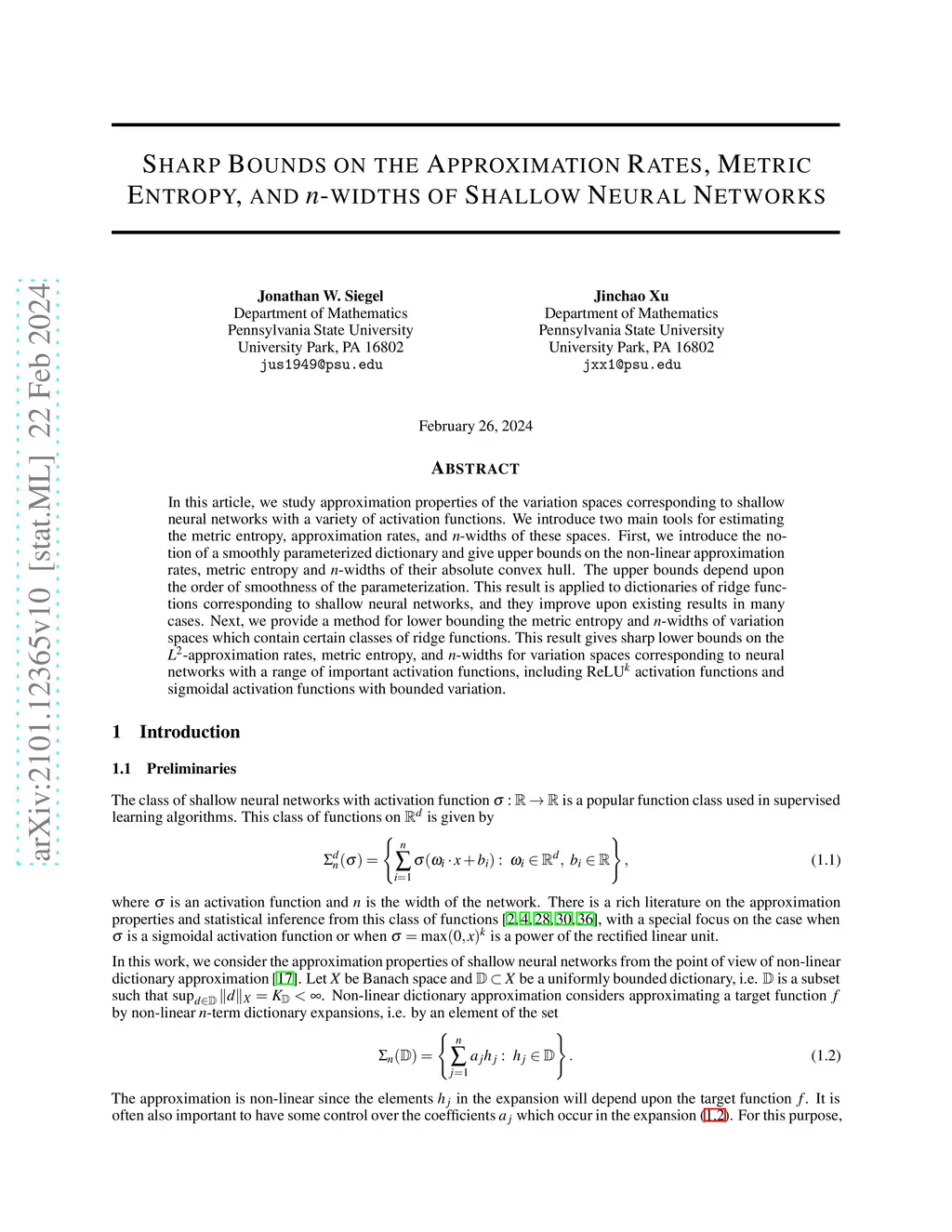 of Shallow Neural Networks