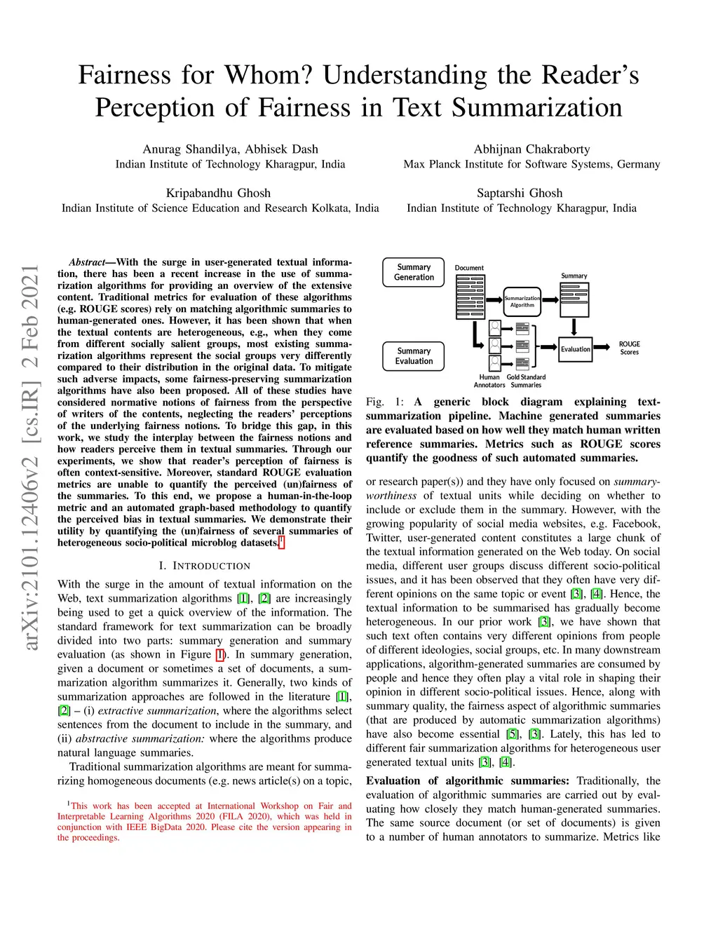 With the surge in user-generated textual information, there has been a recent increase in the use of summarization algorithms for providing an overview of the extensive content. Traditional metrics for evaluation of these algorithms (e.g. ROUGE scores) rely on matching algorithmic summaries to human-generated ones. However, it has been shown that when the textual contents are heterogeneous, e.g., when they come from different socially salient groups, most existing summarization algorithms represent the social groups very differently compared to their distribution in the original data. To mitigate such adverse impacts, some fairness-preserving summarization algorithms have also been proposed. All of these studies have considered normative notions of fairness from the perspective of writers of the contents, neglecting the readers' perceptions of the underlying fairness notions. To bridge this gap, in this work, we study the interplay between the fairness notions and how readers perceive them in textual summaries. Through our experiments, we show that reader's perception of fairness is often context-sensitive. Moreover, standard ROUGE evaluation metrics are unable to quantify the perceived (un)fairness of the summaries. To this end, we propose a human-in-the-loop metric and an automated graph-based methodology to quantify the perceived bias in textual summaries. We demonstrate their utility by quantifying the (un)fairness of several summaries of heterogeneous socio-political microblog datasets.