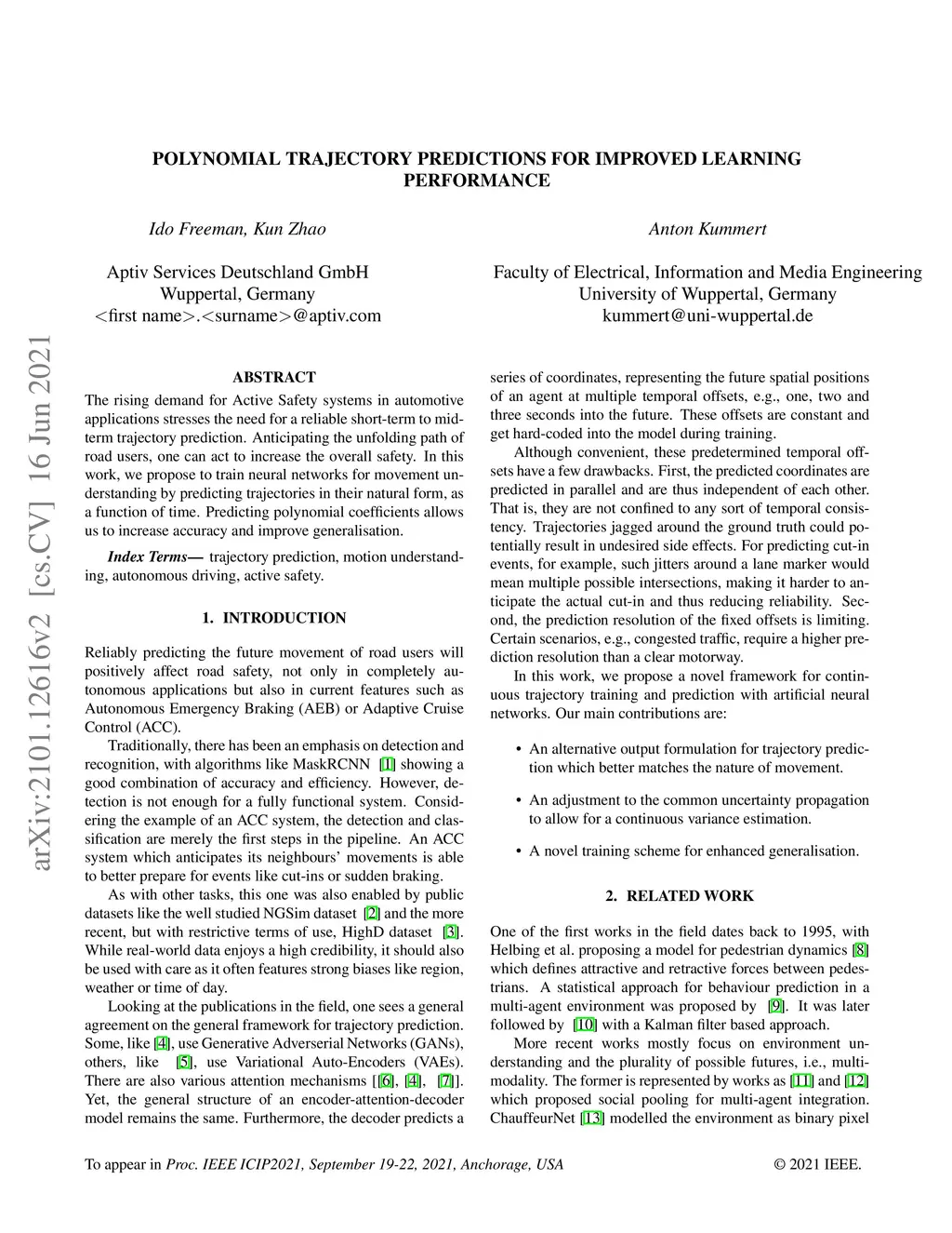 The rising demand for Active Safety systems in automotive applications stresses the need for a reliable short to mid-term trajectory prediction. Anticipating the unfolding path of road users, one can act to increase the overall safety. In this work, we propose to train artificial neural networks for movement understanding by predicting trajectories in their natural form, as a function of time. Predicting polynomial coefficients allows us to increased accuracy and improve generalisation.