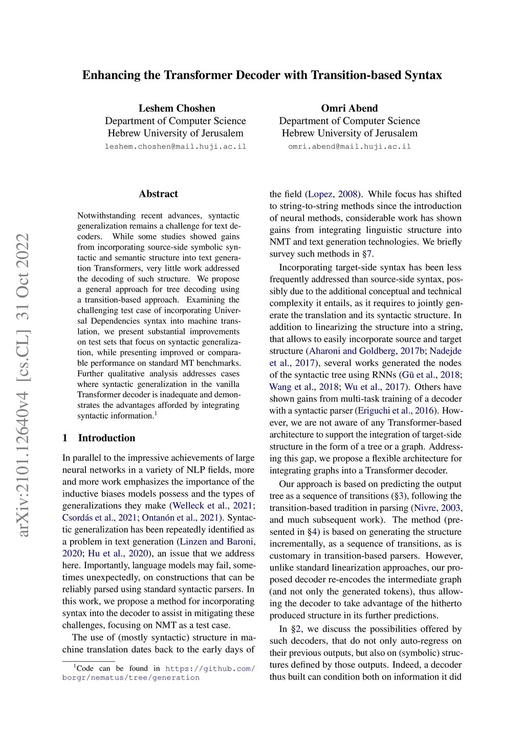 Enhancing the Transformer Decoder with Transition-based Syntax