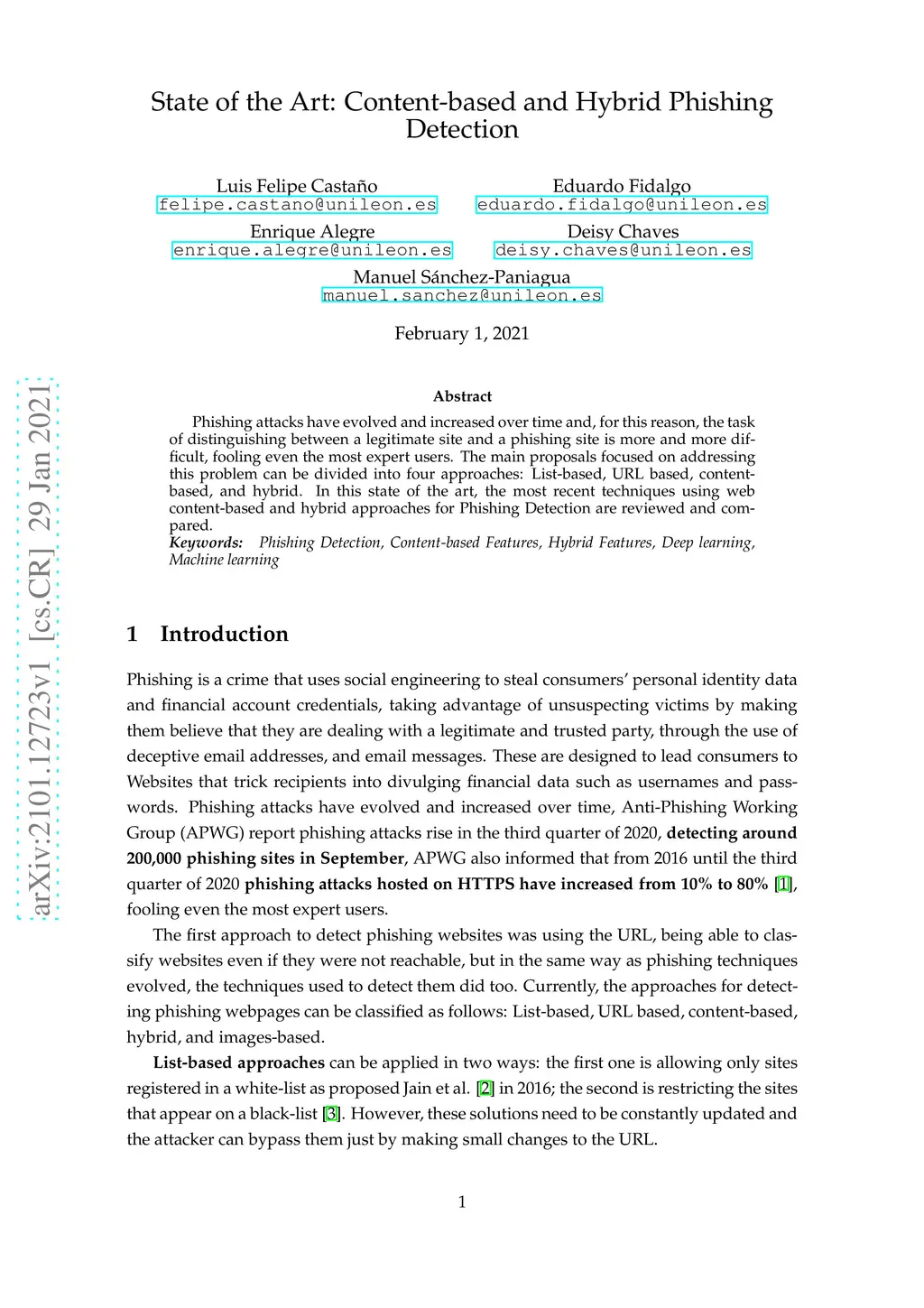 Phishing attacks have evolved and increased over time and, for this reason, the task of distinguishing between a legitimate site and a phishing site is more and more difficult, fooling even the most expert users. The main proposals focused on addressing this problem can be divided into four approaches: List-based, URL based, content-based, and hybrid. In this state of the art, the most recent techniques using web content-based and hybrid approaches for Phishing Detection are reviewed and compared.
