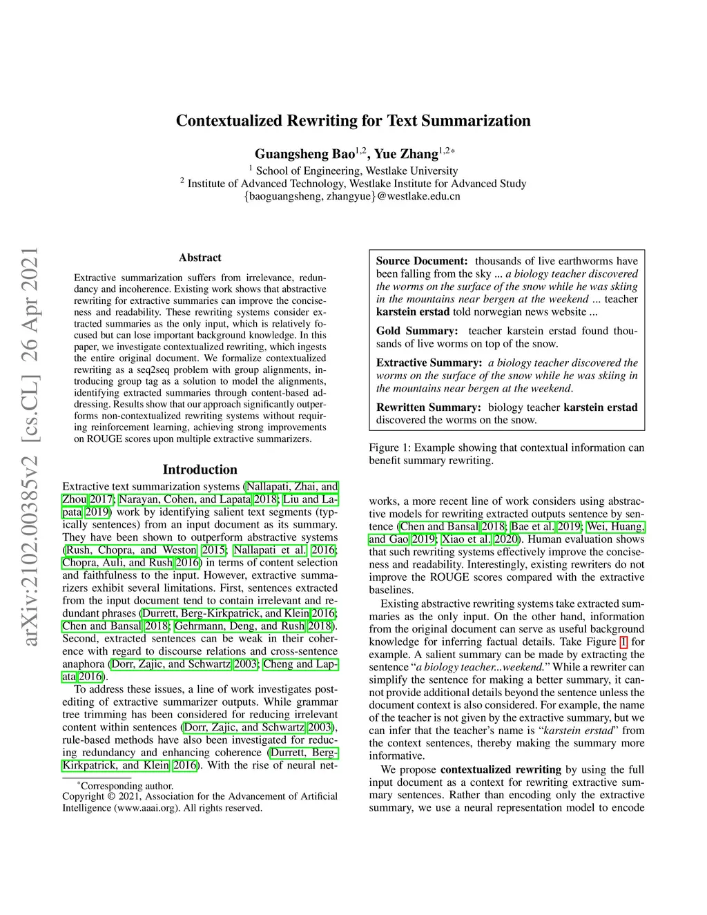 Contextualized Rewriting for Text Summarization