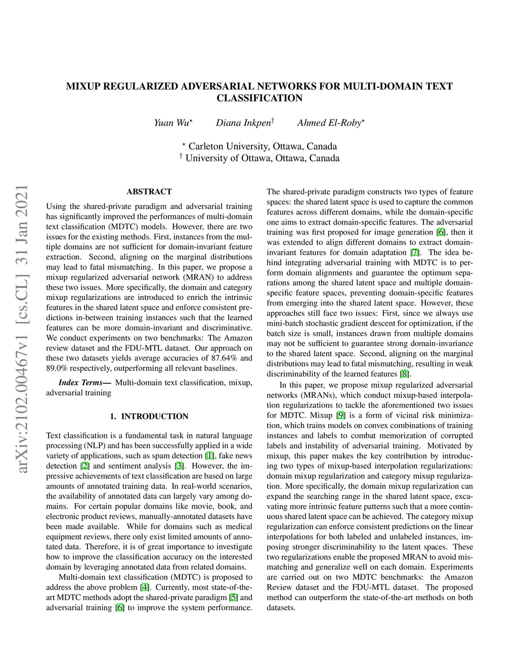 Mixup Regularized Adversarial Networks for Multi-Domain Text
