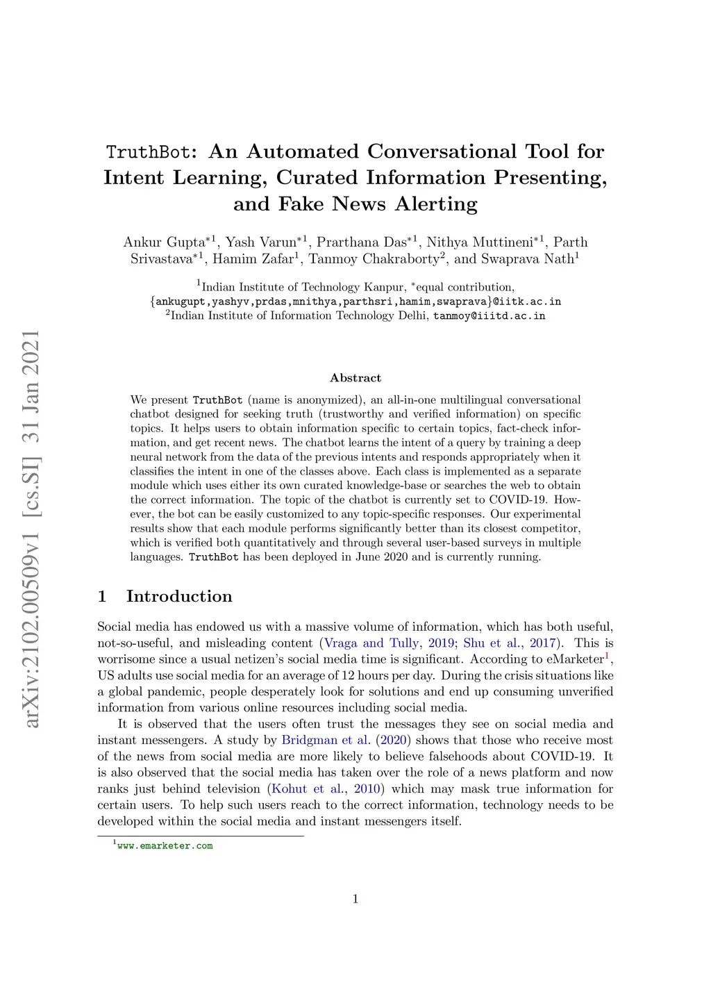 TruthBot: An Automated Conversational Tool for Intent Learning, Curated