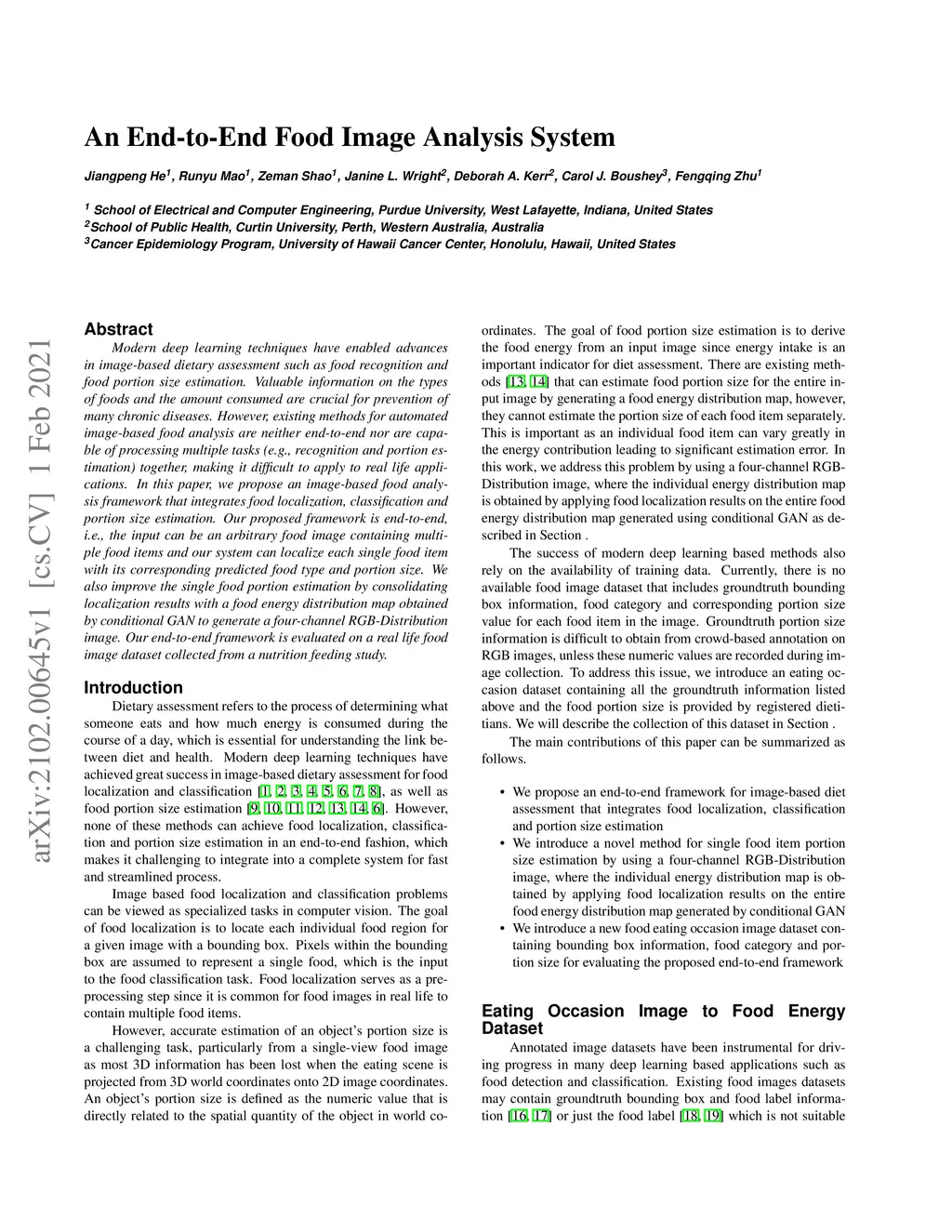 An End-to-End Food Image Analysis System