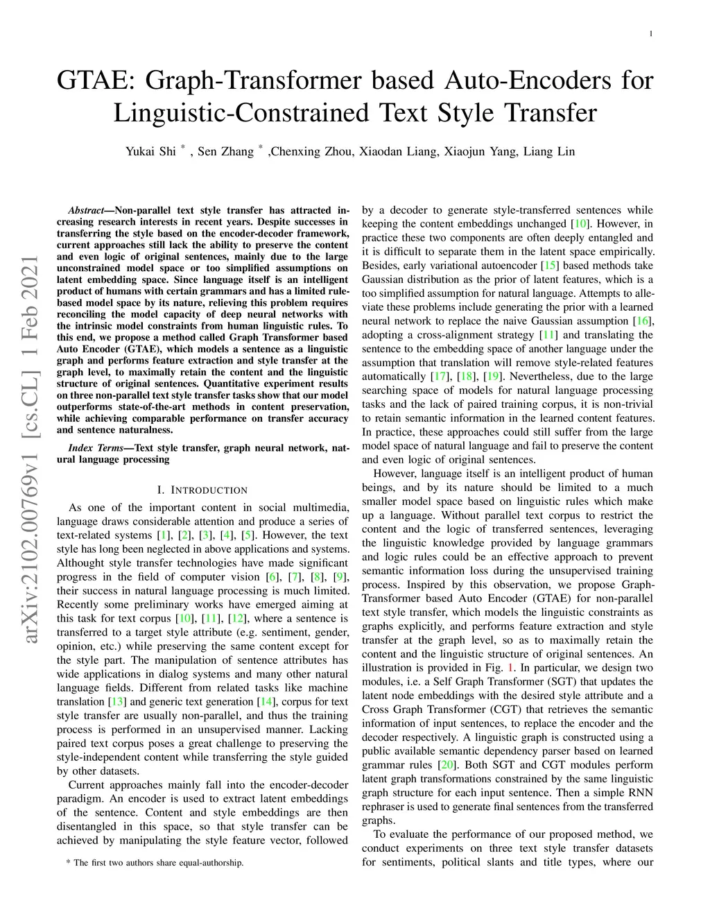 GTAE: Graph-Transformer based Auto-Encoders for Linguistic-Constrained