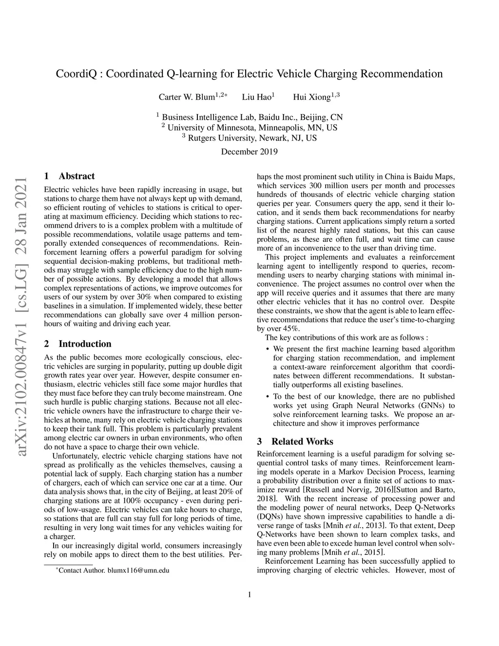 CoordiQ : Coordinated Q-learning for Electric Vehicle Charging