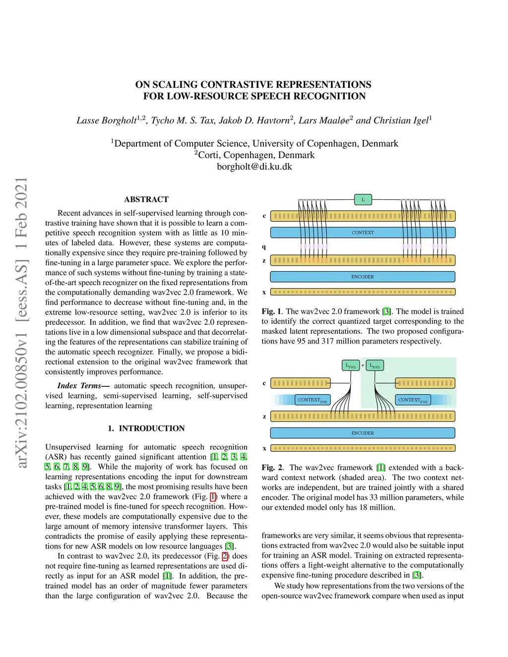 Recent advances in self-supervised learning through contrastive training have shown that it is possible to learn a competitive speech recognition system with as little as 10 minutes of labeled data. However, these systems are computationally expensive since they require pre-training followed by fine-tuning in a large parameter space. We explore the performance of such systems without fine-tuning by training a state-of-the-art speech recognizer on the fixed representations from the computationally demanding wav2vec 2.0 framework. We find performance to decrease without fine-tuning and, in the extreme low-resource setting, wav2vec 2.0 is inferior to its predecessor. In addition, we find that wav2vec 2.0 representations live in a low dimensional subspace and that decorrelating the features of the representations can stabilize training of the automatic speech recognizer. Finally, we propose a bidirectional extension to the original wav2vec framework that consistently improves performance.