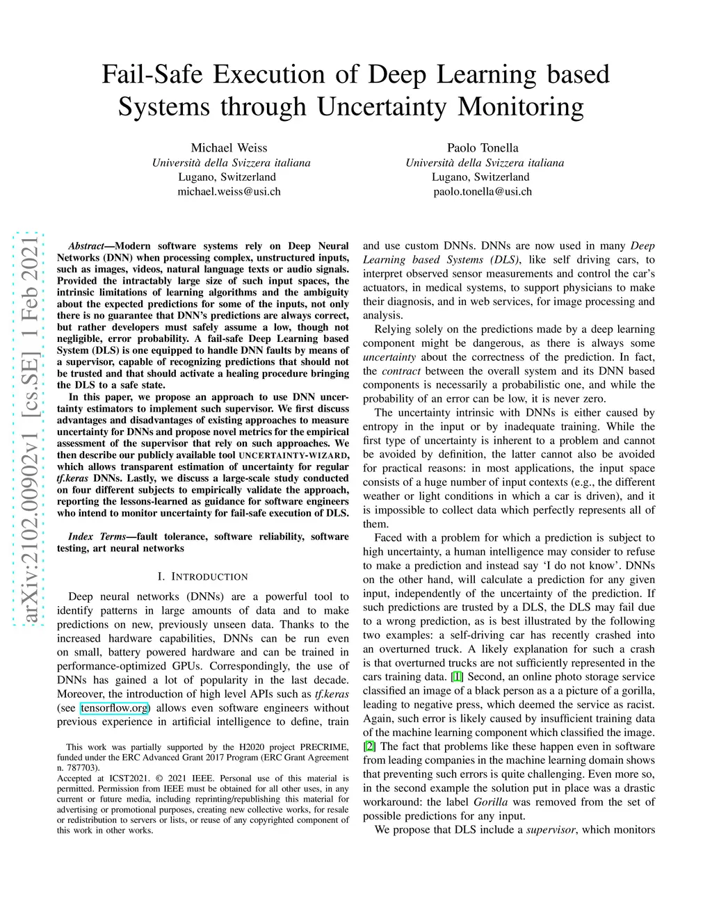 Modern software systems rely on Deep Neural Networks (DNN) when processing complex, unstructured inputs, such as images, videos, natural language texts or audio signals. Provided the intractably large size of such input spaces, the intrinsic limitations of learning algorithms, and the ambiguity about the expected predictions for some of the inputs, not only there is no guarantee that DNN's predictions are always correct, but rather developers must safely assume a low, though not negligible, error probability. A fail-safe Deep Learning based System (DLS) is one equipped to handle DNN faults by means of a supervisor, capable of recognizing predictions that should not be trusted and that should activate a healing procedure bringing the DLS to a safe state. In this paper, we propose an approach to use DNN uncertainty estimators to implement such a supervisor. We first discuss the advantages and disadvantages of existing approaches to measure uncertainty for DNNs and propose novel metrics for the empirical assessment of the supervisor that rely on such approaches. We then describe our publicly available tool UNCERTAINTY-WIZARD, which allows transparent estimation of uncertainty for regular tf.keras DNNs. Lastly, we discuss a large-scale study conducted on four different subjects to empirically validate the approach, reporting the lessons-learned as guidance for software engineers who intend to monitor uncertainty for fail-safe execution of DLS.