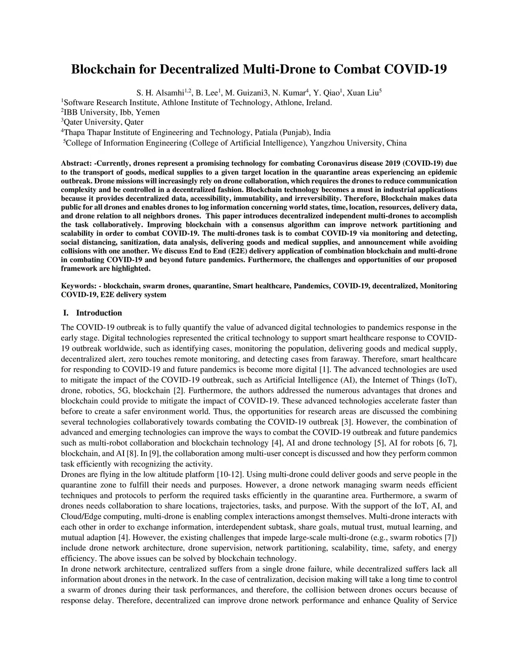 Blockchain for Decentralized Multi-Drone to Combat COVID-19