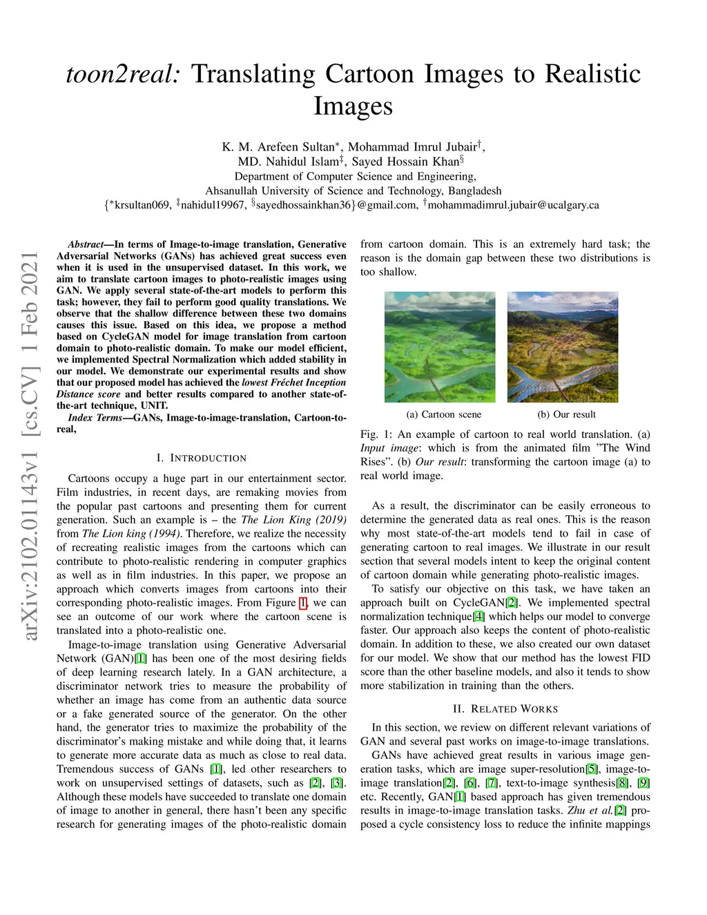 In terms of Image-to-image translation, Generative Adversarial Networks (GANs) has achieved great success even when it is used in the unsupervised dataset. In this work, we aim to translate cartoon images to photo-realistic images using GAN. We apply several state-of-the-art models to perform this task; however, they fail to perform good quality translations. We observe that the shallow difference between these two domains causes this issue. Based on this idea, we propose a method based on CycleGAN model for image translation from cartoon domain to photo-realistic domain. To make our model efficient, we implemented Spectral Normalization which added stability in our model. We demonstrate our experimental results and show that our proposed model has achieved the lowest Frechet Inception Distance score and better results compared to another state-of-the-art technique, UNIT.