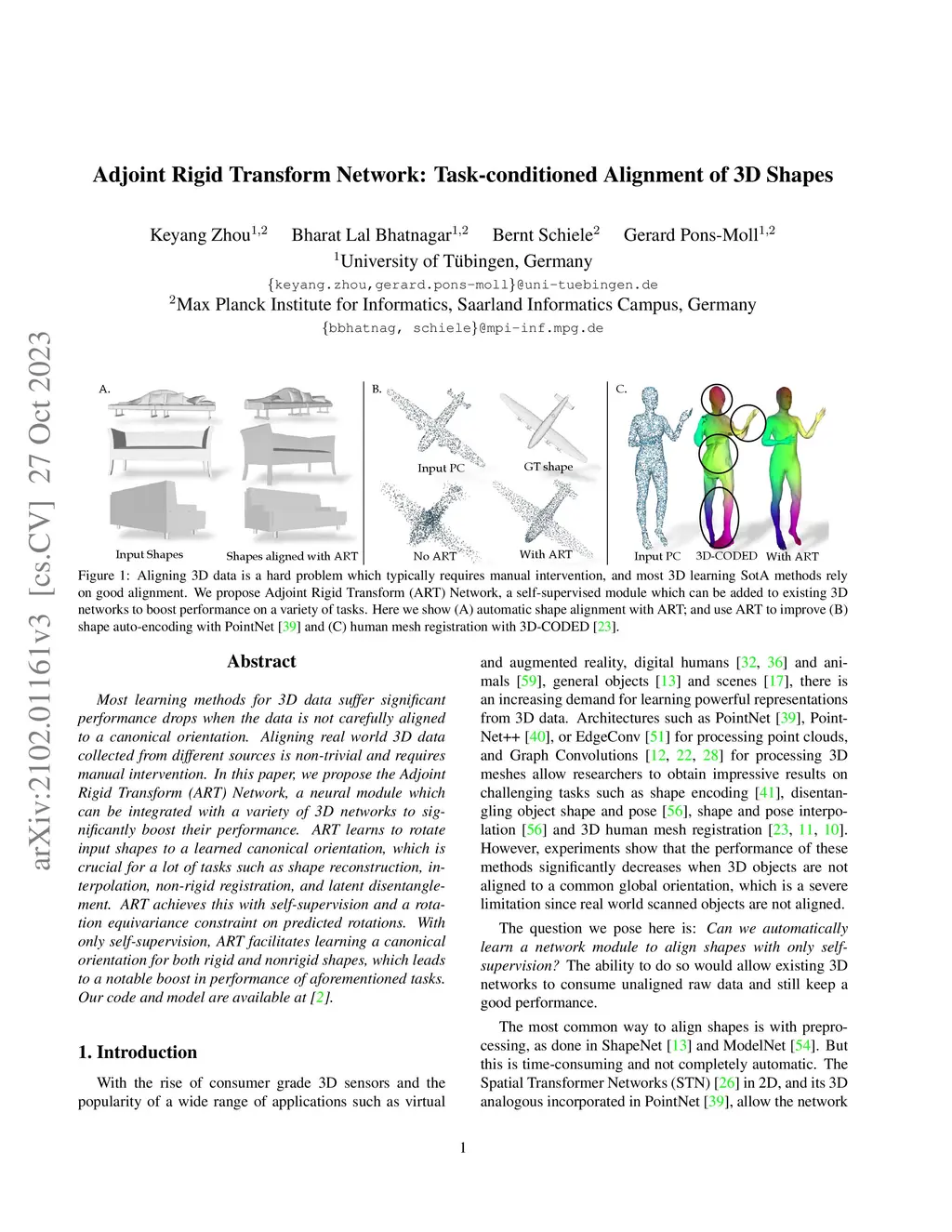 Adjoint Rigid Transform Network: Task-conditioned Alignment of 3D Shapes