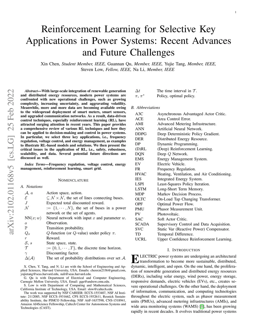 Reinforcement Learning for Selective Key Applications in Power Systems: