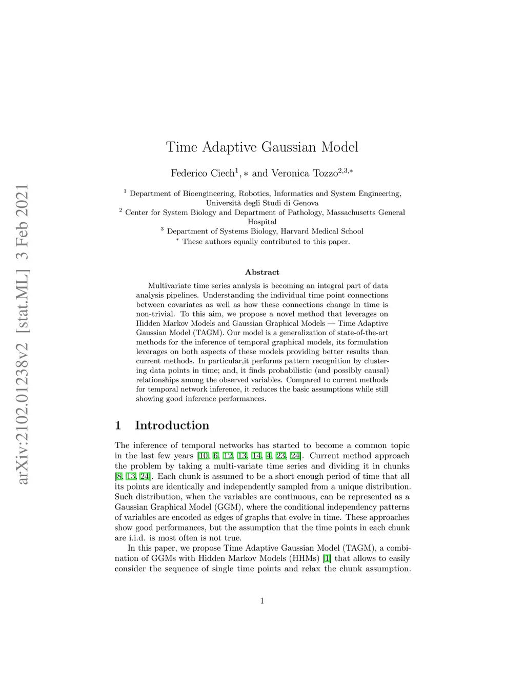 Multivariate time series analysis is becoming an integral part of data analysis pipelines. Understanding the individual time point connections between covariates as well as how these connections change in time is non-trivial. To this aim, we propose a novel method that leverages on Hidden Markov Models and Gaussian Graphical Models -- Time Adaptive Gaussian Model (TAGM). Our model is a generalization of state-of-the-art methods for the inference of temporal graphical models, its formulation leverages on both aspects of these models providing better results than current methods. In particular,it performs pattern recognition by clustering data points in time; and, it finds probabilistic (and possibly causal) relationships among the observed variables. Compared to current methods for temporal network inference, it reduces the basic assumptions while still showing good inference performances.