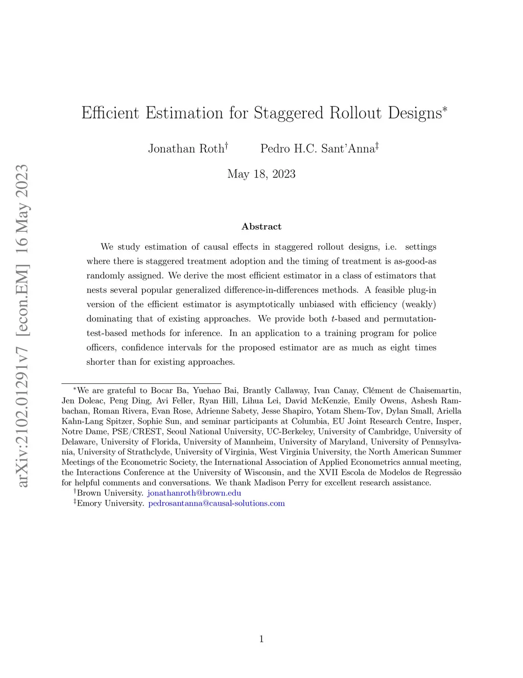 Efficient Estimation for Staggered Rollout Designs