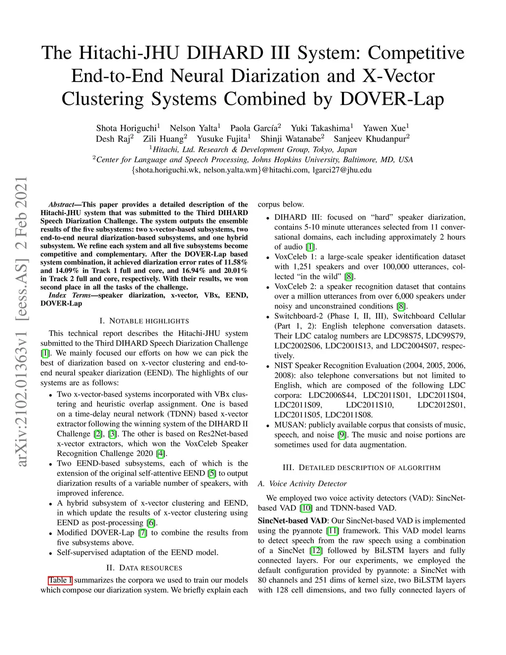 The Hitachi-JHU DIHARD III System: Competitive End-to-End Neural
