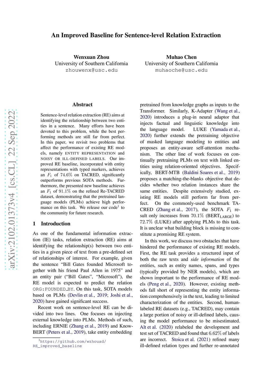 Sentence-level relation extraction (RE) aims at identifying the relationship between two entities in a sentence. Many efforts have been devoted to this problem, while the best performing methods are still far from perfect. In this paper, we revisit two problems that affect the performance of existing RE models, namely entity representation and noisy or ill-defined labels. Our improved RE baseline, incorporated with entity representations with typed markers, achieves an F1 of 74.6% on TACRED, significantly outperforms previous SOTA methods. Furthermore, the presented new baseline achieves an F1 of 91.1% on the refined Re-TACRED dataset, demonstrating that the pretrained language models (PLMs) achieve high performance on this task. We release our code to the community for future research.