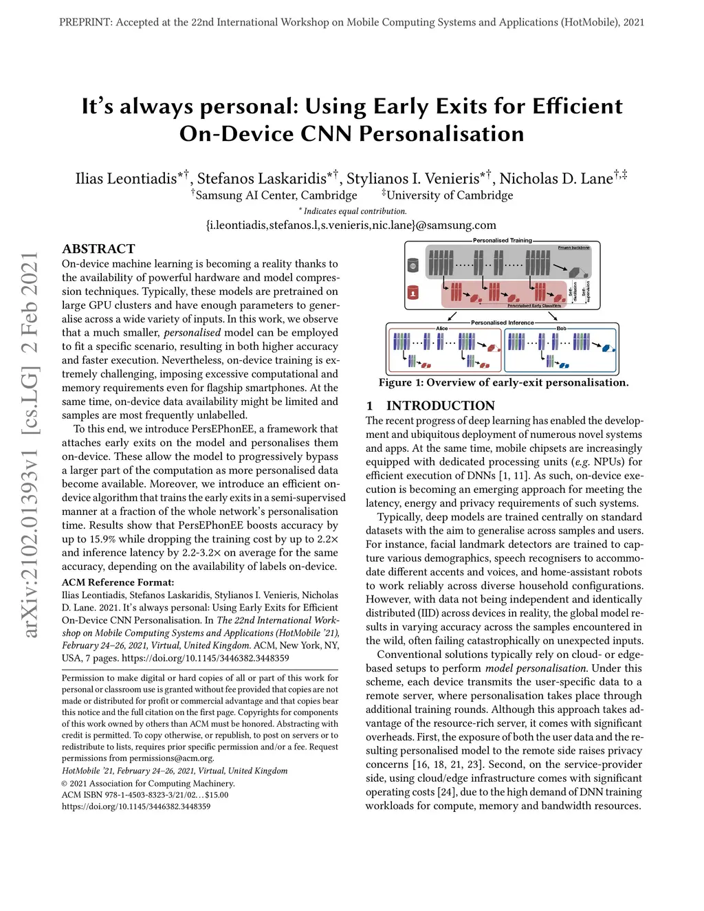 On-device machine learning is becoming a reality thanks to the availability of powerful hardware and model compression techniques. Typically, these models are pretrained on large GPU clusters and have enough parameters to generalise across a wide variety of inputs. In this work, we observe that a much smaller, personalised model can be employed to fit a specific scenario, resulting in both higher accuracy and faster execution. Nevertheless, on-device training is extremely challenging, imposing excessive computational and memory requirements even for flagship smartphones. At the same time, on-device data availability might be limited and samples are most frequently unlabelled. To this end, we introduce PersEPhonEE, a framework that attaches early exits on the model and personalises them on-device. These allow the model to progressively bypass a larger part of the computation as more personalised data become available. Moreover, we introduce an efficient on-device algorithm that trains the early exits in a semi-supervised manner at a fraction of the whole network's personalisation time. Results show that PersEPhonEE boosts accuracy by up to 15.9% while dropping the training cost by up to 2.2x and inference latency by 2.2-3.2x on average for the same accuracy, depending on the availability of labels on-device.