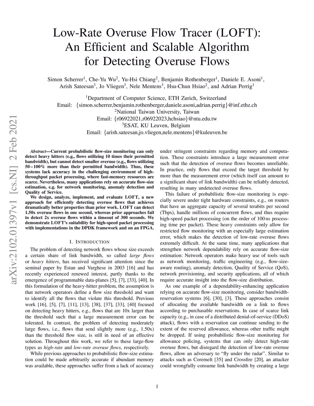Current probabilistic flow-size monitoring can only detect heavy hitters (e.g., flows utilizing 10 times their permitted bandwidth), but cannot detect smaller overuse (e.g., flows utilizing 50-100% more than their permitted bandwidth). Thus, these systems lack accuracy in the challenging environment of high-throughput packet processing, where fast-memory resources are scarce. Nevertheless, many applications rely on accurate flow-size estimation, e.g. for network monitoring, anomaly detection and Quality of Service. We design, analyze, implement, and evaluate LOFT, a new approach for efficiently detecting overuse flows that achieves dramatically better properties than prior work. LOFT can detect 1.5x overuse flows in one second, whereas prior approaches fail to detect 2x overuse flows within a timeout of 300 seconds. We demonstrate LOFT's suitability for high-speed packet processing with implementations in the DPDK framework and on an FPGA.