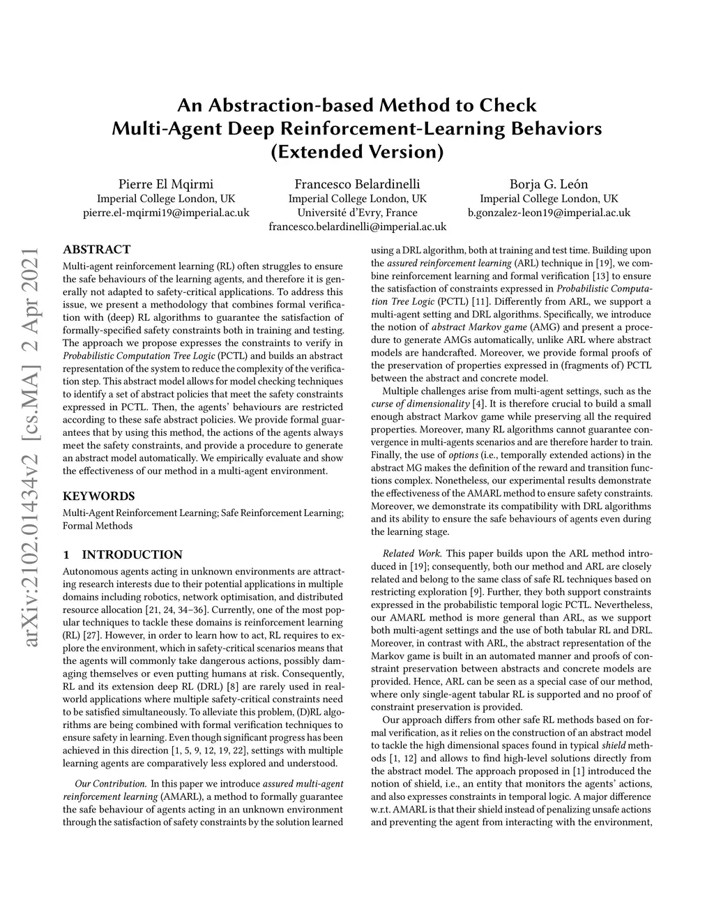 Multi-agent reinforcement learning (RL) often struggles to ensure the safe behaviours of the learning agents, and therefore it is generally not adapted to safety-critical applications. To address this issue, we present a methodology that combines formal verification with (deep) RL algorithms to guarantee the satisfaction of formally-specified safety constraints both in training and testing. The approach we propose expresses the constraints to verify in Probabilistic Computation Tree Logic (PCTL) and builds an abstract representation of the system to reduce the complexity of the verification step. This abstract model allows for model checking techniques to identify a set of abstract policies that meet the safety constraints expressed in PCTL. Then, the agents' behaviours are restricted according to these safe abstract policies. We provide formal guarantees that by using this method, the actions of the agents always meet the safety constraints, and provide a procedure to generate an abstract model automatically. We empirically evaluate and show the effectiveness of our method in a multi-agent environment.