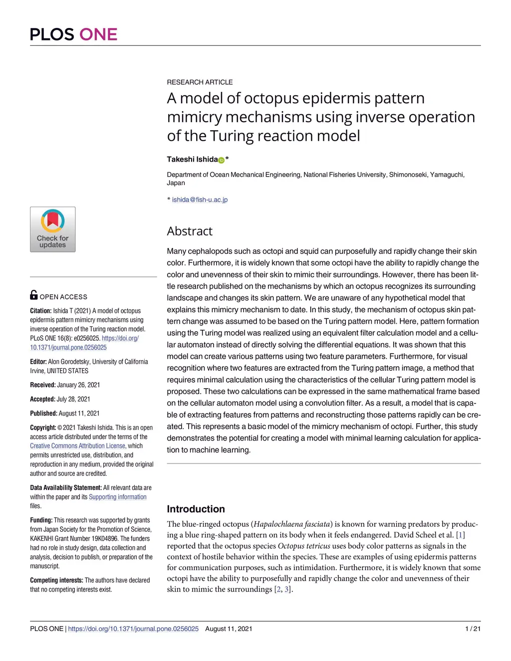 Mimicry mechanism model of octopus epidermis pattern by inverse