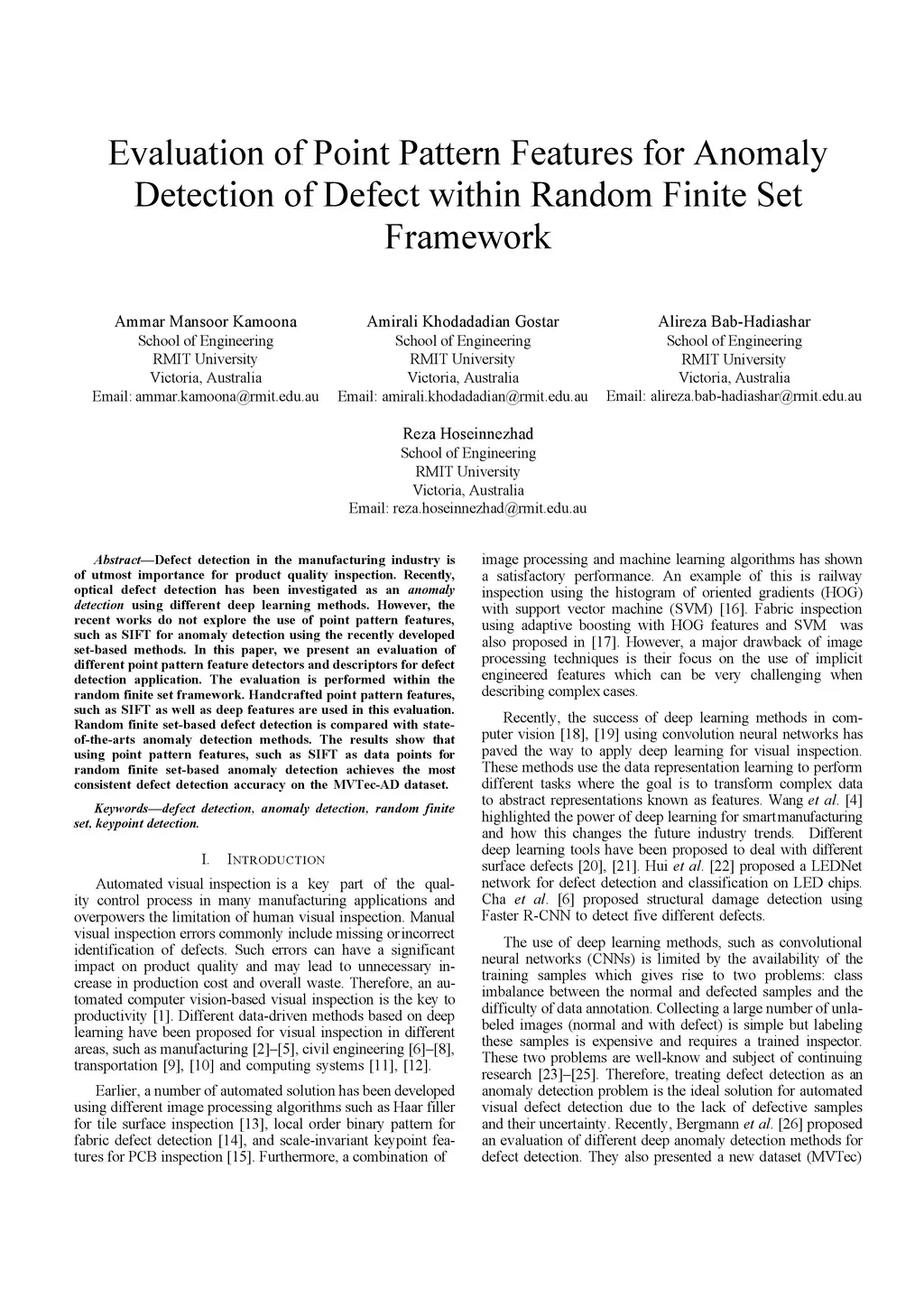 Evaluation of Point Pattern Features for Anomaly Detection of Defect
