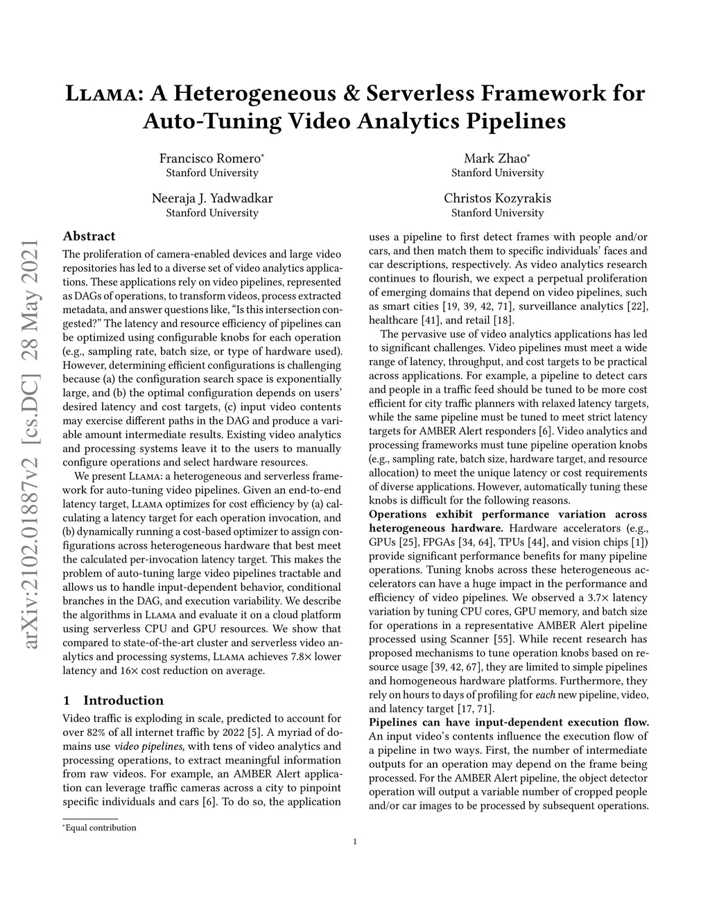 Llama: A Heterogeneous & Serverless Framework for Auto-Tuning Video