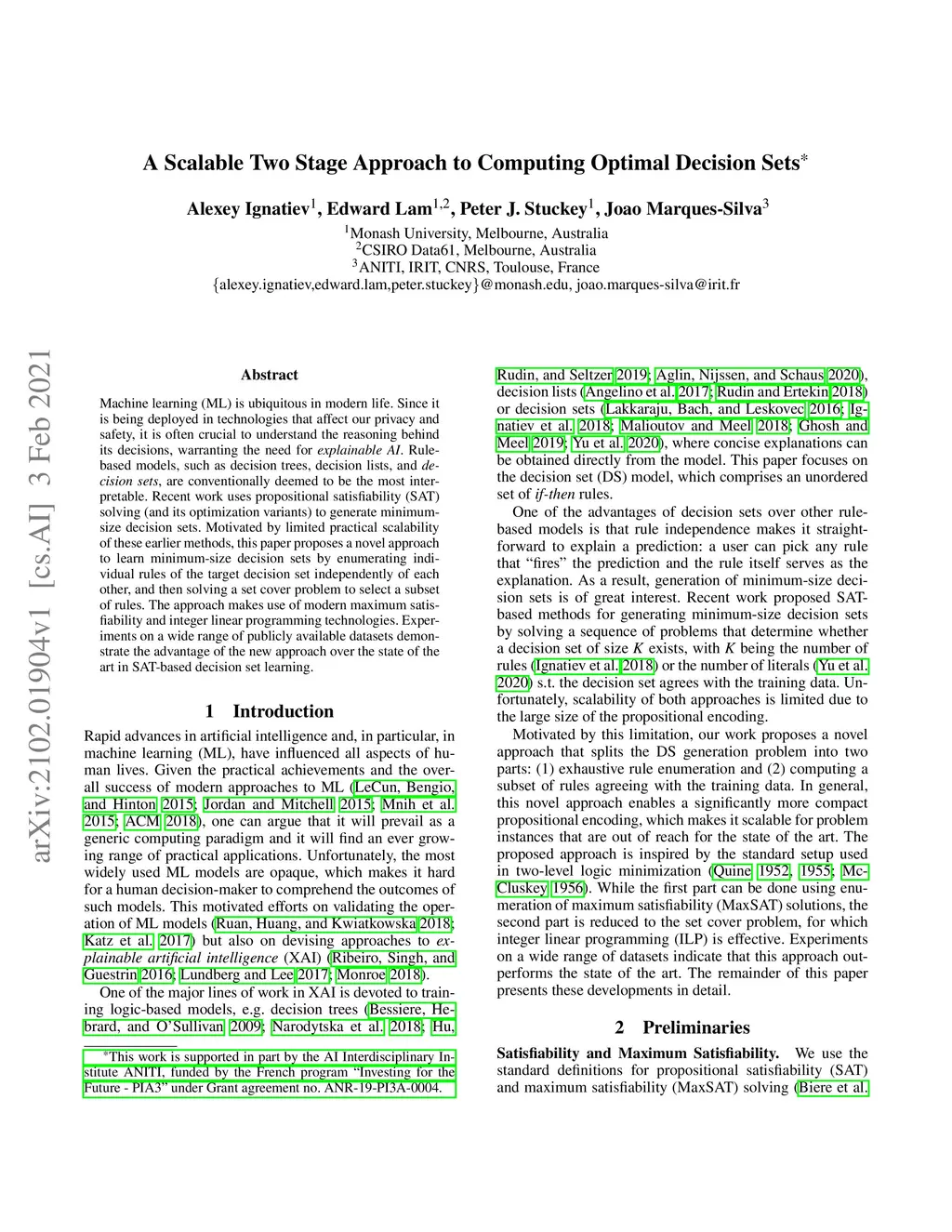 A Scalable Two Stage Approach to Computing Optimal Decision Sets