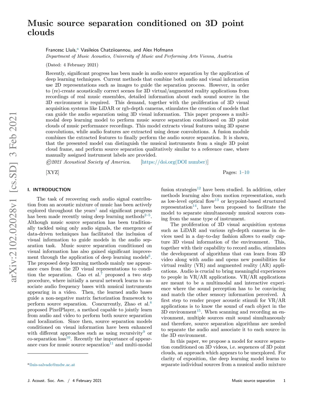 Music source separation conditioned on 3D point clouds