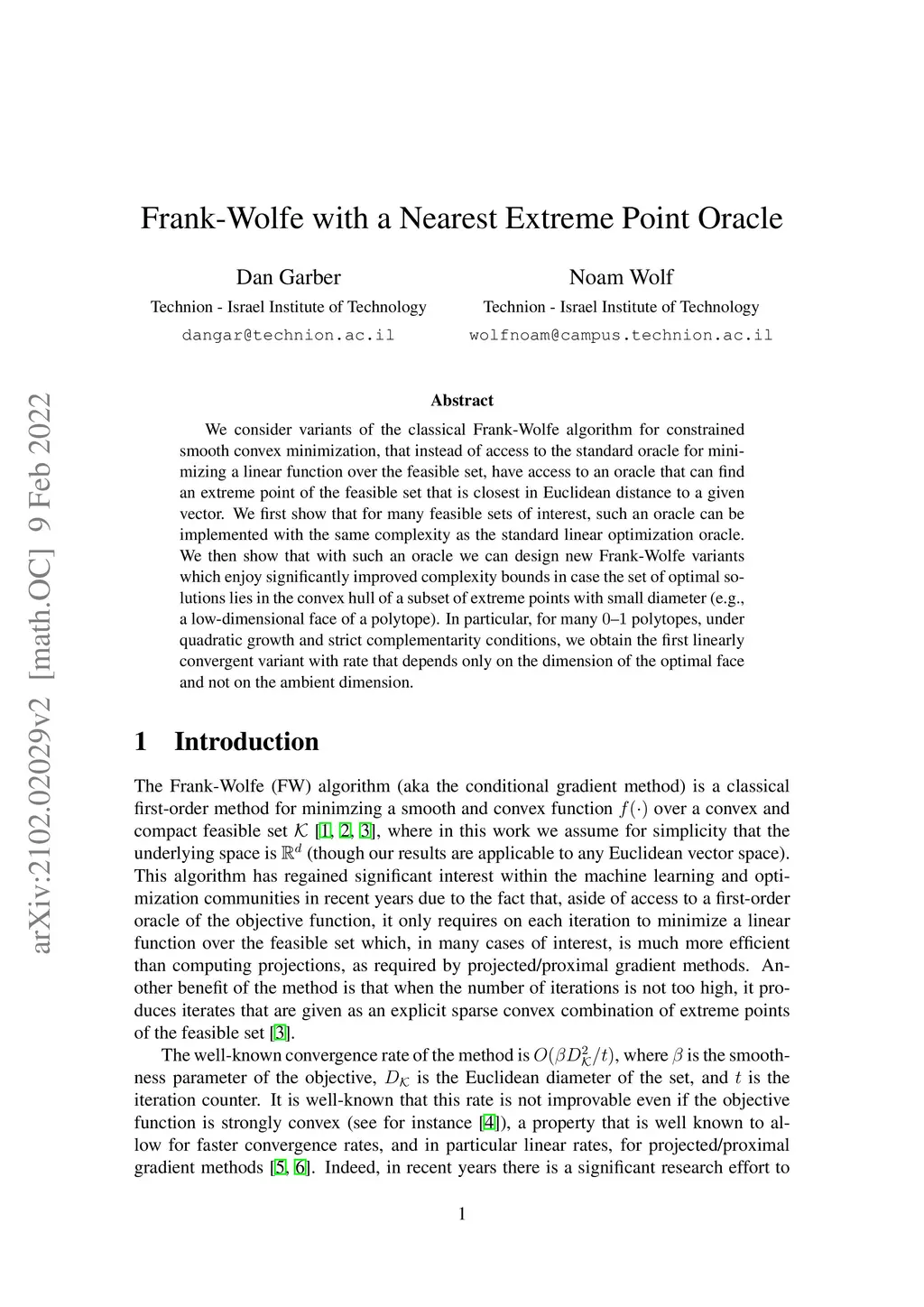 We consider variants of the classical Frank-Wolfe algorithm for constrained smooth convex minimization, that instead of access to the standard oracle for minimizing a linear function over the feasible set, have access to an oracle that can find an extreme point of the feasible set that is closest in Euclidean distance to a given vector. We first show that for many feasible sets of interest, such an oracle can be implemented with the same complexity as the standard linear optimization oracle. We then show that with such an oracle we can design new Frank-Wolfe variants which enjoy significantly improved complexity bounds in case the set of optimal solutions lies in the convex hull of a subset of extreme points with small diameter (e.g., a low-dimensional face of a polytope). In particular, for many polytopes, under quadratic growth and strict complementarity conditions, we obtain the first linearly convergent variant with rate that depends only on the dimension of the optimal face and not on the ambient dimension.