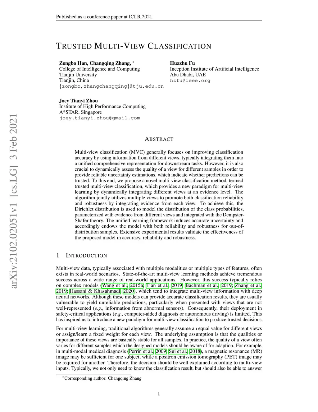 Trusted Multi-View Classification