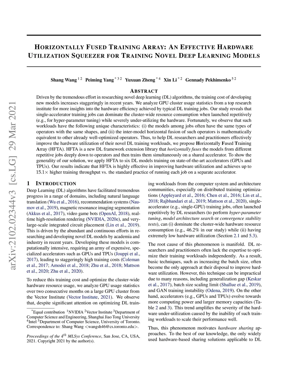 Horizontally Fused Training Array: An Effective Hardware Utilization