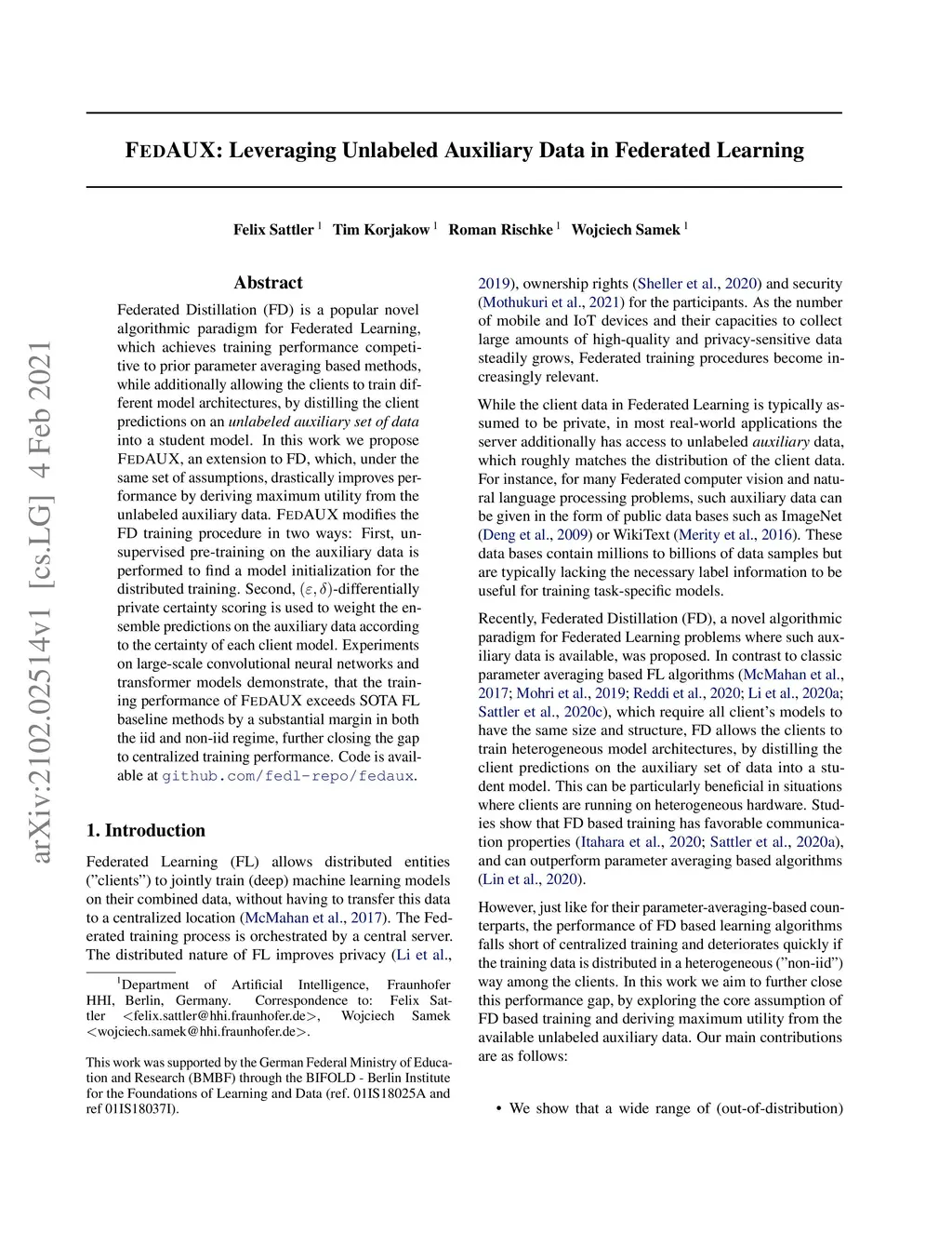 FedAUX: Leveraging Unlabeled Auxiliary Data in Federated Learning