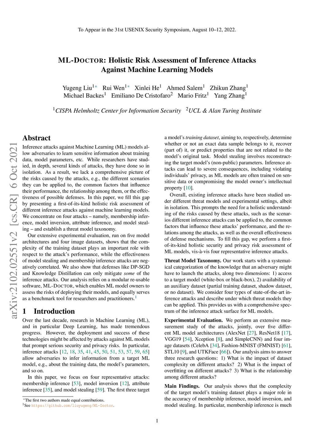 ML-Doctor: Holistic Risk Assessment of Inference Attacks Against Machine