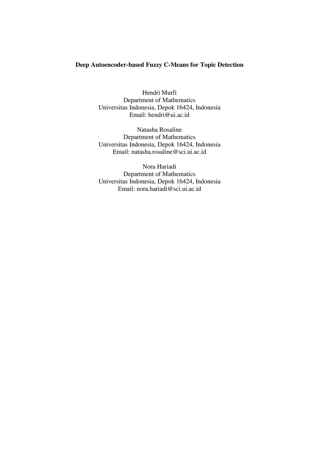 Deep Autoencoder-based Fuzzy C-Means for Topic Detection