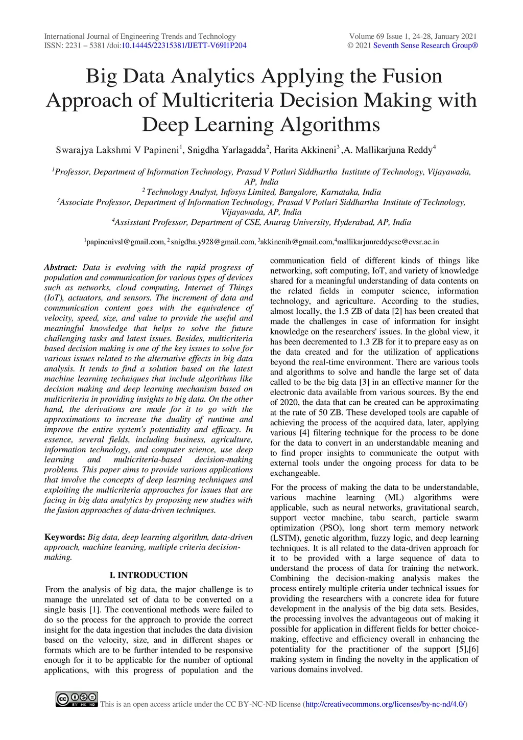 Data is evolving with the rapid progress of population and communication for various types of devices such as networks, cloud computing, Internet of Things (IoT), actuators, and sensors. The increment of data and communication content goes with the equivalence of velocity, speed, size, and value to provide the useful and meaningful knowledge that helps to solve the future challenging tasks and latest issues. Besides, multicriteria based decision making is one of the key issues to solve for various issues related to the alternative effects in big data analysis. It tends to find a solution based on the latest machine learning techniques that include algorithms like decision making and deep learning mechanism based on multicriteria in providing insights to big data. On the other hand, the derivations are made for it to go with the approximations to increase the duality of runtime and improve the entire system's potentiality and efficacy. In essence, several fields, including business, agriculture, information technology, and computer science, use deep learning and multicriteria-based decision-making problems. This paper aims to provide various applications that involve the concepts of deep learning techniques and exploiting the multicriteria approaches for issues that are facing in big data analytics by proposing new studies with the fusion approaches of data-driven techniques.