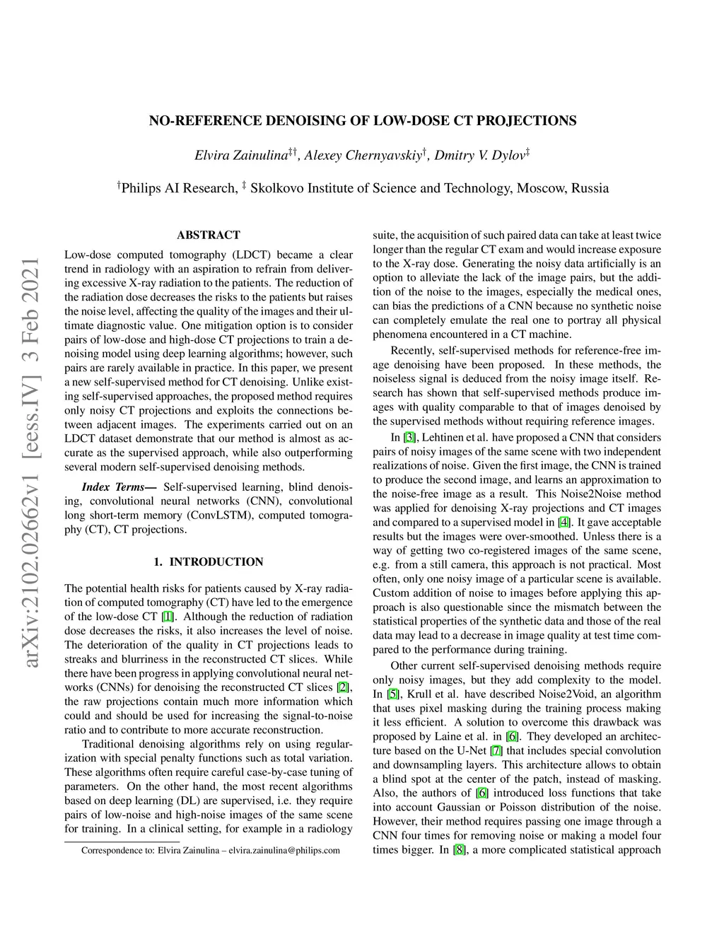 No-reference denoising of low-dose CT projections