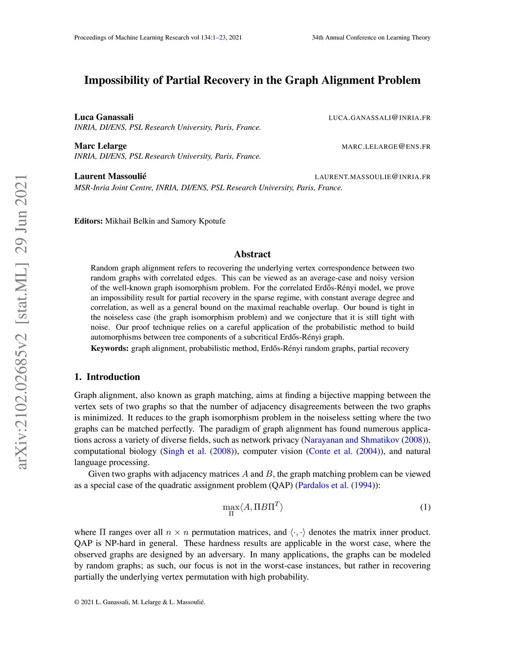 Annual Conference Computational Learning Theory (COLT), 2021