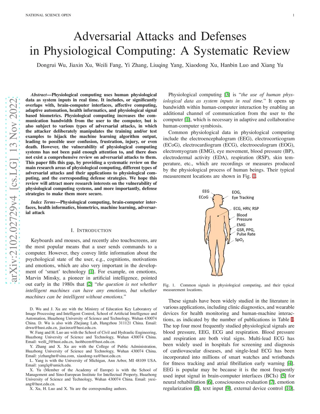 Adversarial Attacks and Defenses in Physiological Computing: A