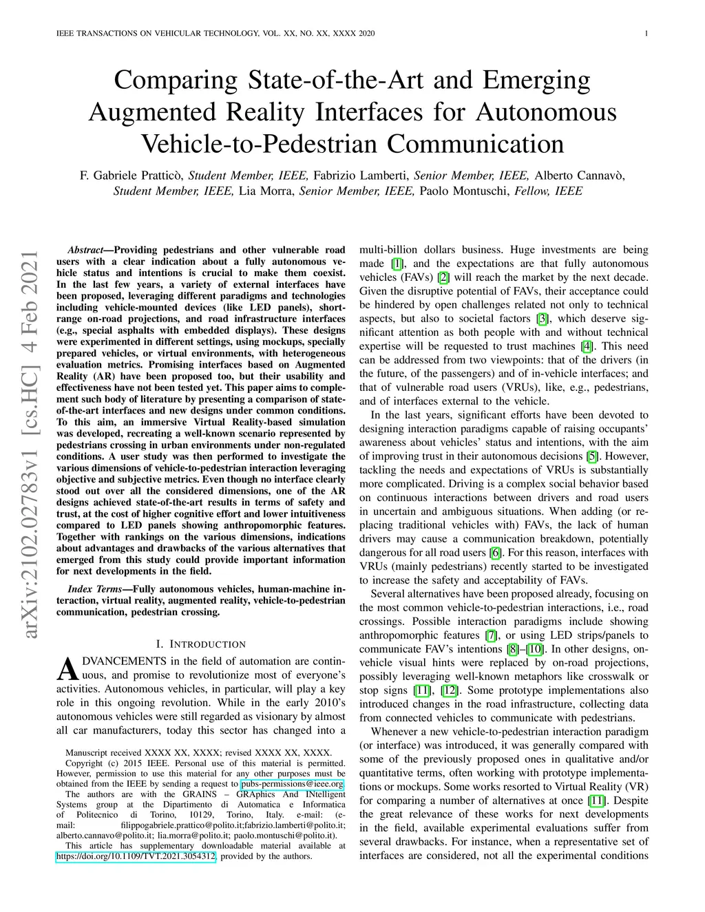 Providing pedestrians and other vulnerable road users with a clear indication about a fully autonomous vehicle status and intentions is crucial to make them coexist. In the last few years, a variety of external interfaces have been proposed, leveraging different paradigms and technologies including vehicle-mounted devices (like LED panels), short-range on-road projections, and road infrastructure interfaces (e.g., special asphalts with embedded displays). These designs were experimented in different settings, using mockups, specially prepared vehicles, or virtual environments, with heterogeneous evaluation metrics. Promising interfaces based on Augmented Reality (AR) have been proposed too, but their usability and effectiveness have not been tested yet. This paper aims to complement such body of literature by presenting a comparison of state-of-the-art interfaces and new designs under common conditions. To this aim, an immersive Virtual Reality-based simulation was developed, recreating a well-known scenario represented by pedestrians crossing in urban environments under non-regulated conditions. A user study was then performed to investigate the various dimensions of vehicle-to-pedestrian interaction leveraging objective and subjective metrics. Even though no interface clearly stood out over all the considered dimensions, one of the AR designs achieved state-of-the-art results in terms of safety and trust, at the cost of higher cognitive effort and lower intuitiveness compared to LED panels showing anthropomorphic features. Together with rankings on the various dimensions, indications about advantages and drawbacks of the various alternatives that emerged from this study could provide important information for next developments in the field.